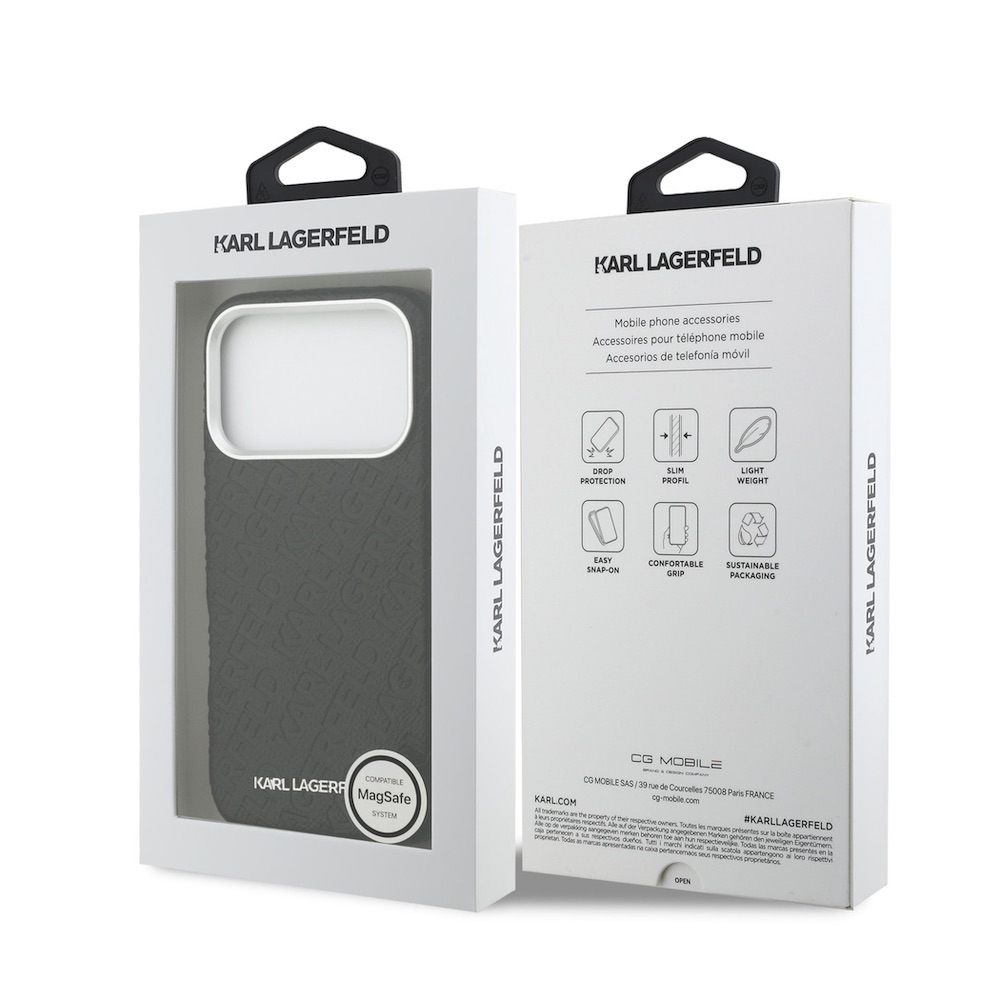 Дизайнерски кожен кейс с MagSafe за iPhone 17 Pro - Karl Lagerfeld PU Grained Repeated Logo MagSafe Leather Hard Case (черен)