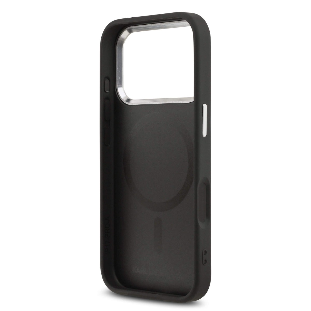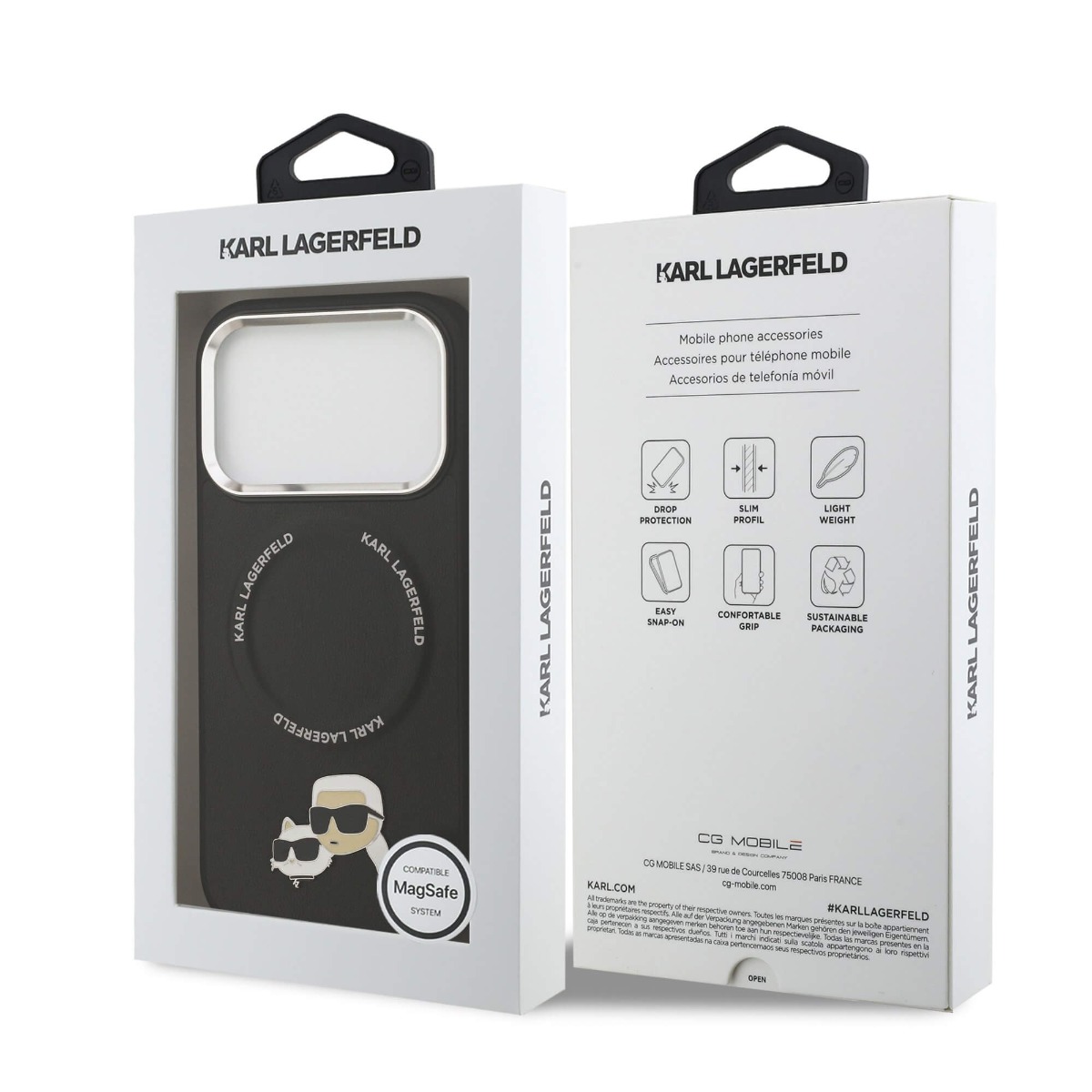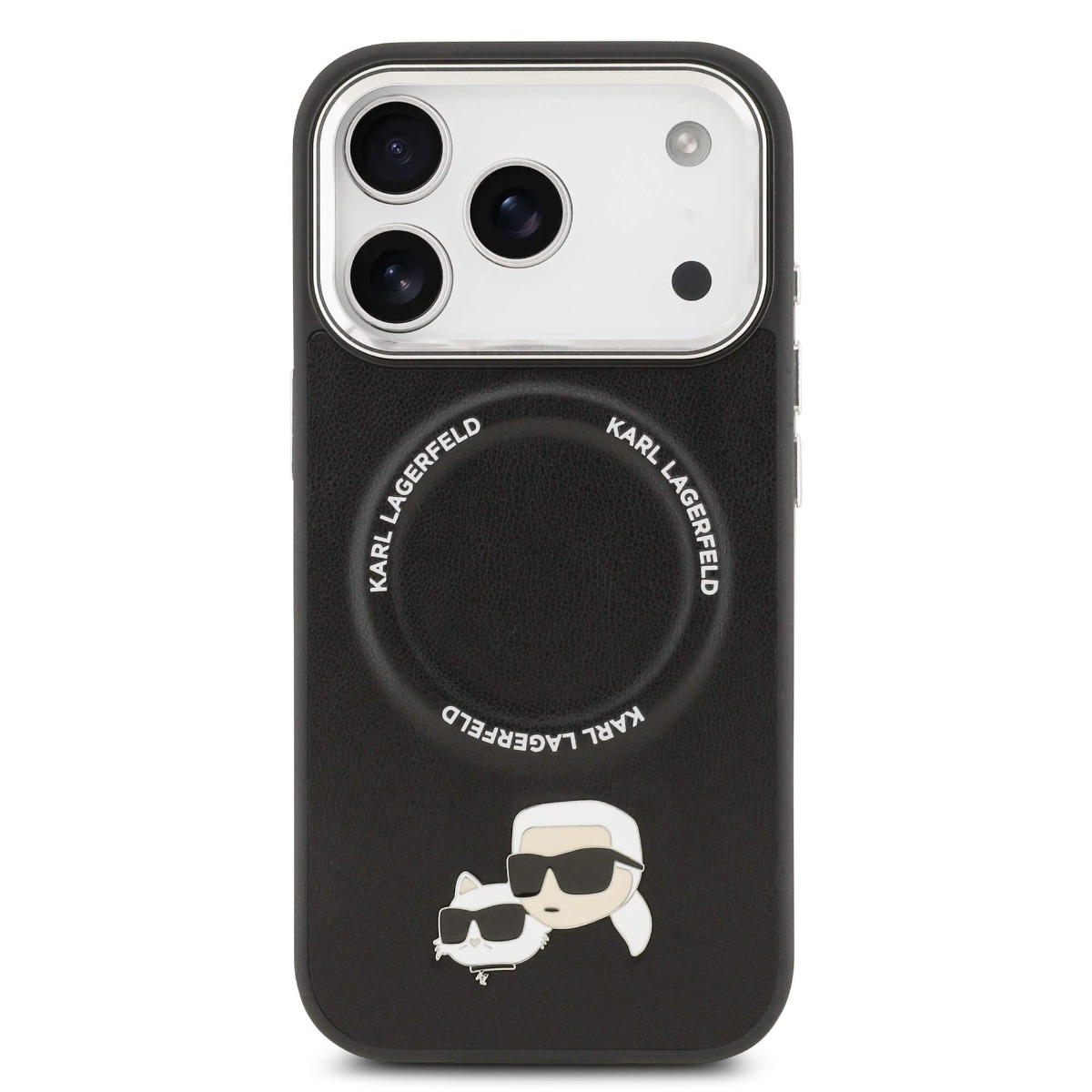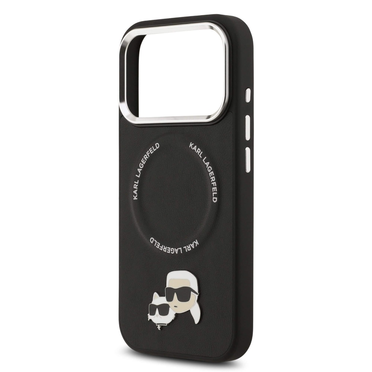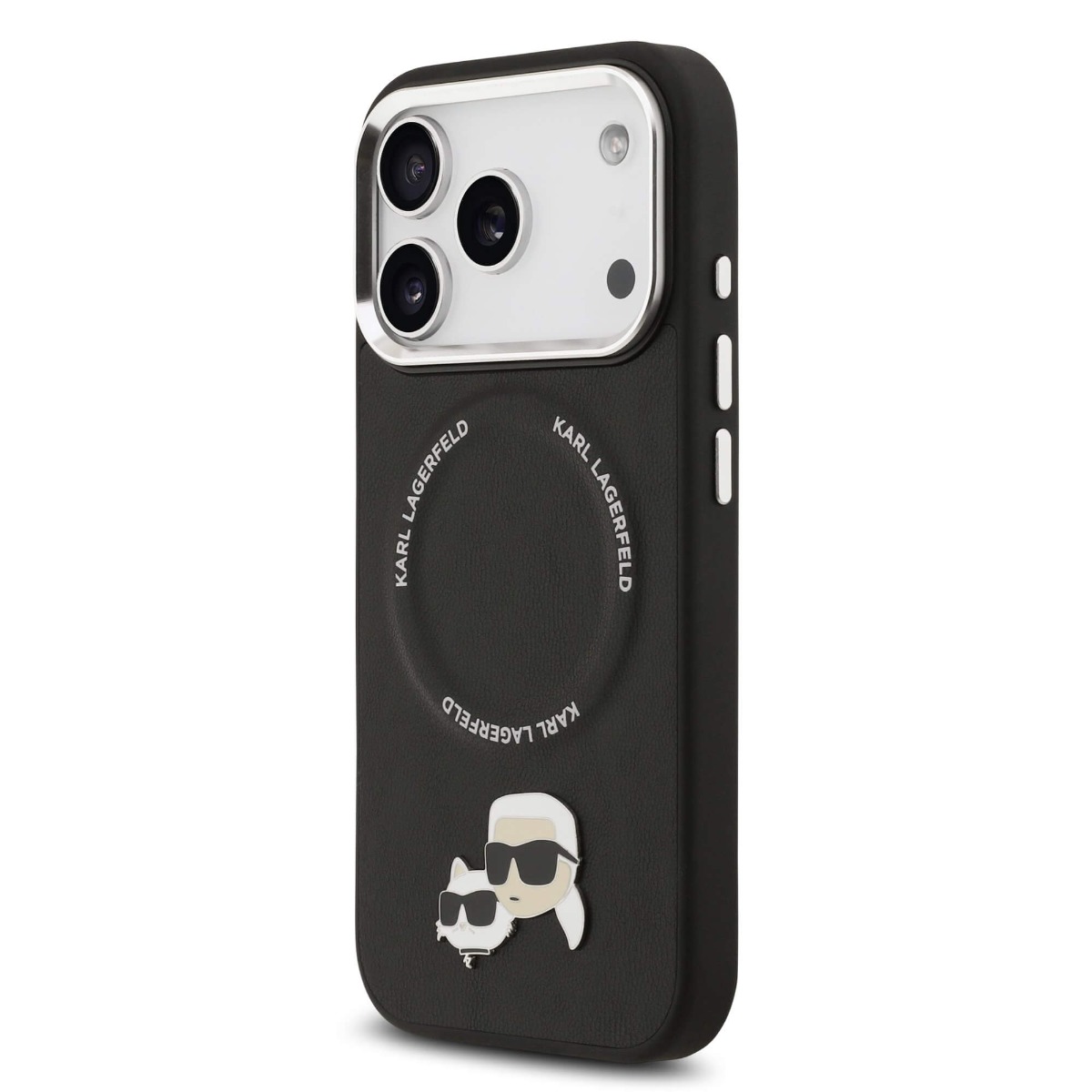 Дизайнерски кожен кейс с MagSafe за iPhone 17 Pro - Karl Lagerfeld PU Karl and Choupette Heads Pins MagSafe Case (черен)