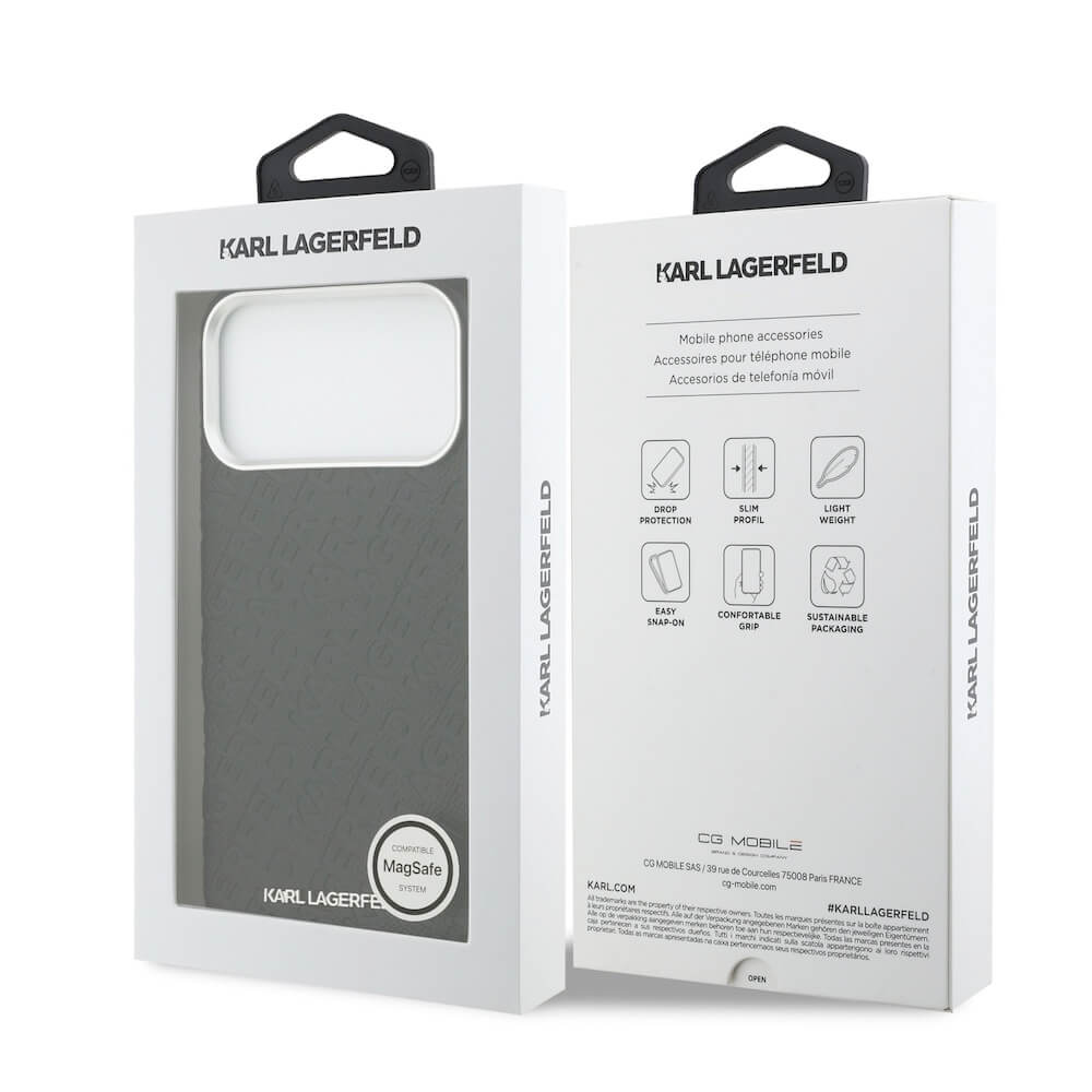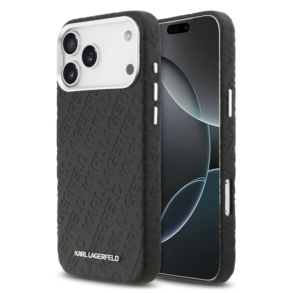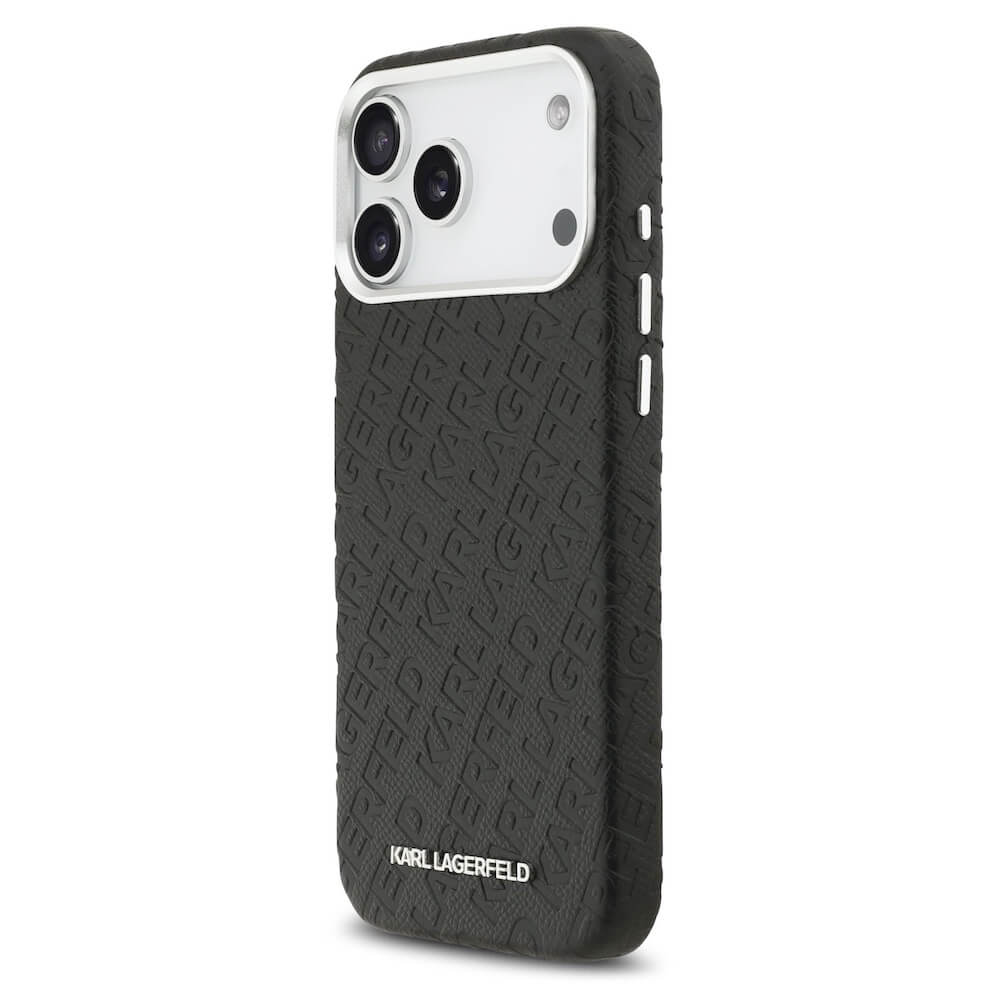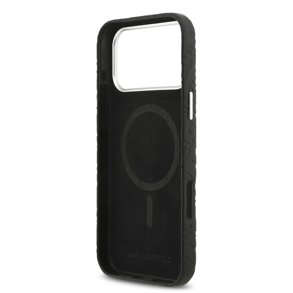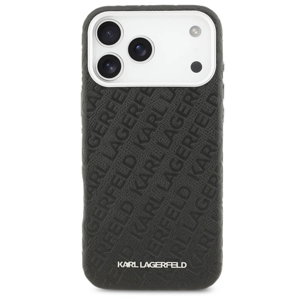 Дизайнерски кожен кейс с MagSafe за iPhone 17 Pro Max - Karl Lagerfeld PU Grained Repeated Logo MagSafe Leather Hard Case (черен)