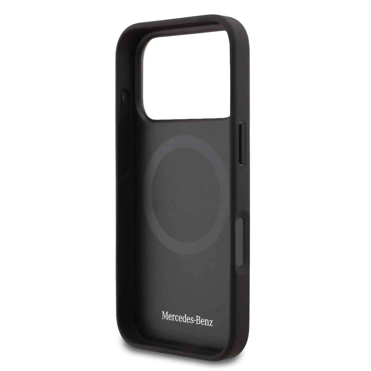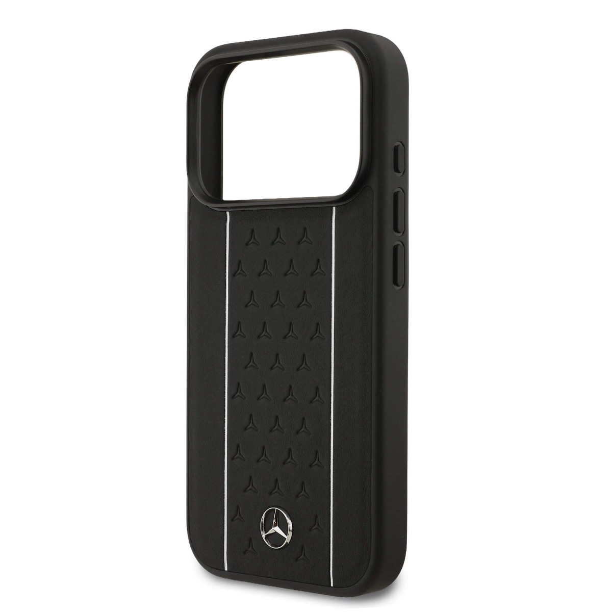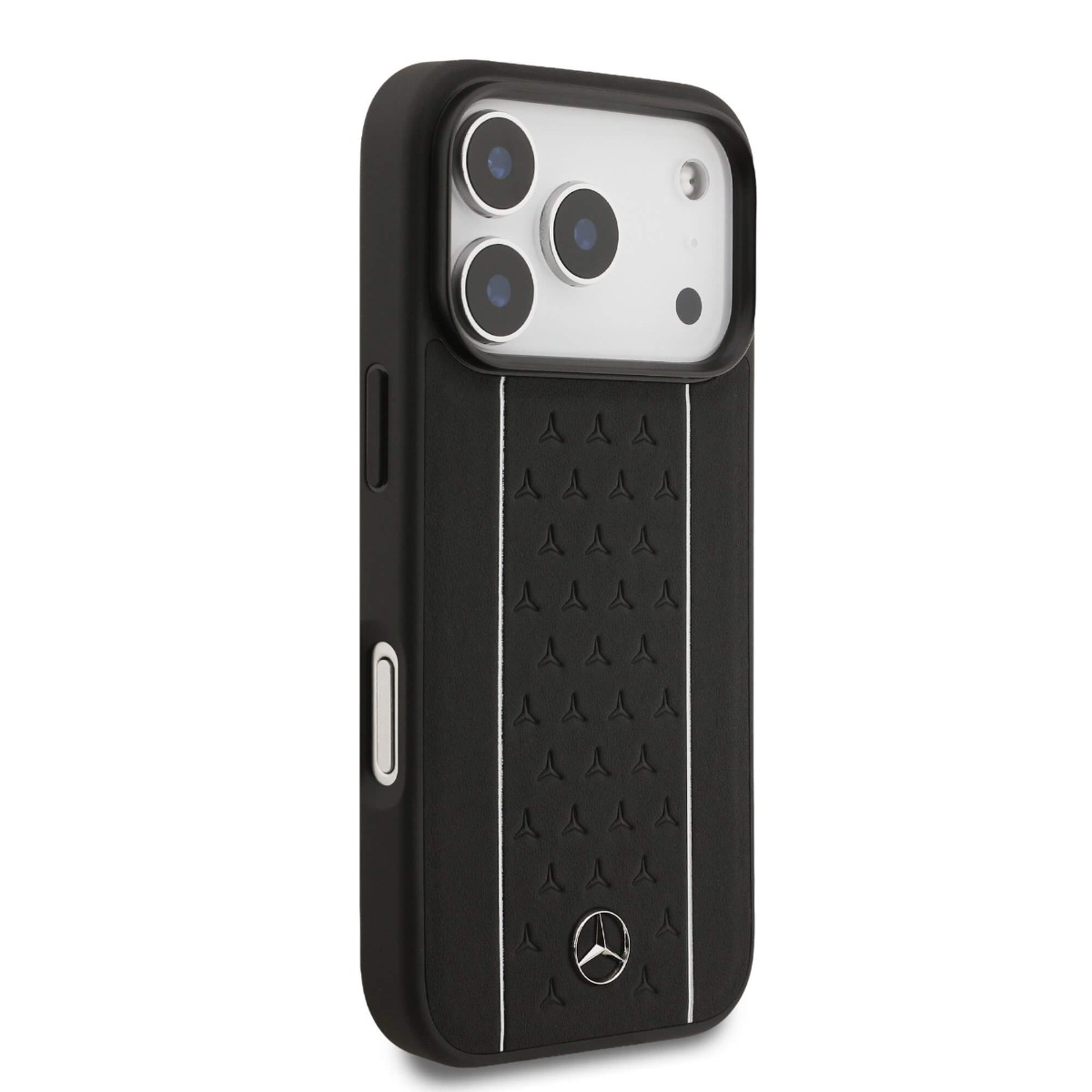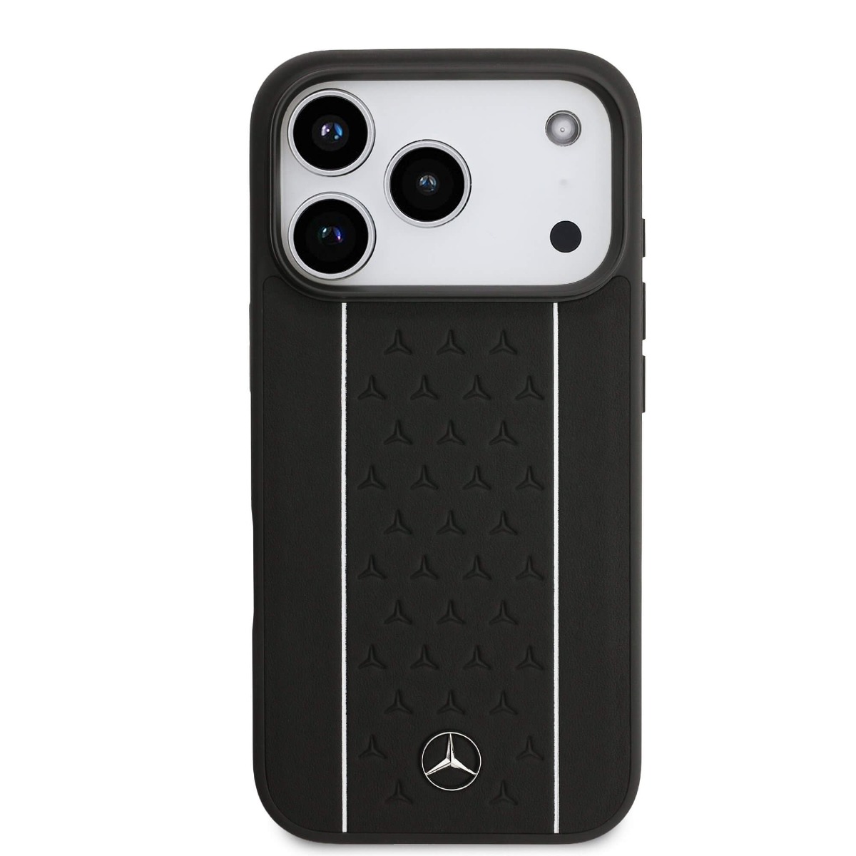 Дизайнерски кожен кейс с MagSafe за iPhone 17 Pro - Mercedes Leather Star Pattern and Stripes MagSafe Case (черен-бял)