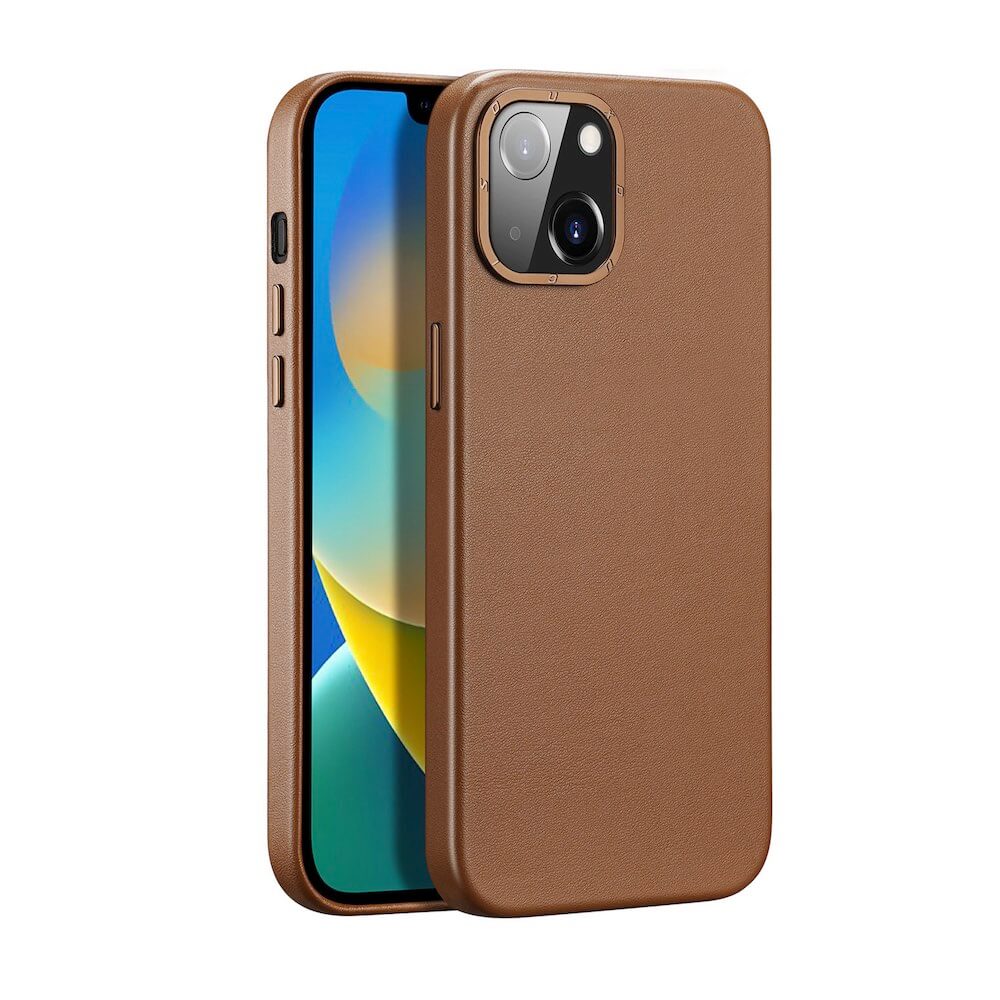 Dux Ducis Grit Faux Leather MagSafe Case - дизайнерски кожен кейс с MagSafe за iPhone 14 (кафяв)