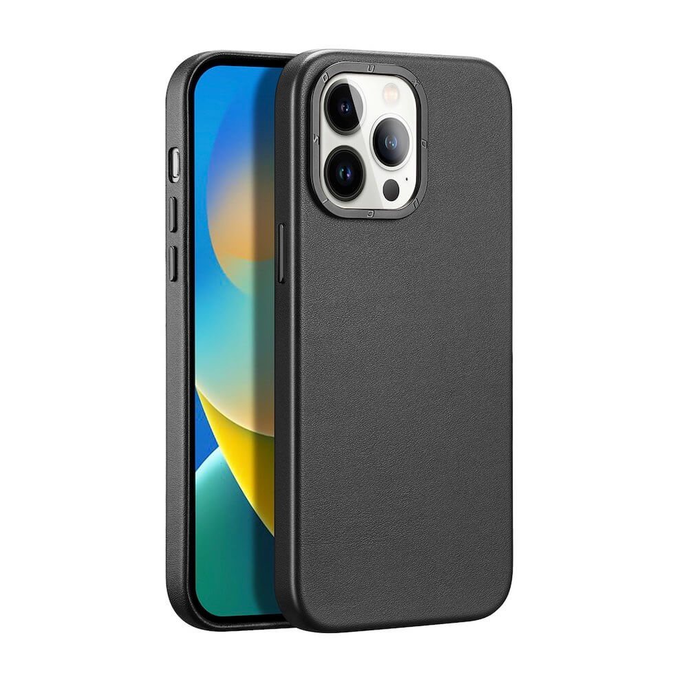 Dux Ducis Grit Faux Leather MagSafe Case - дизайнерски кожен кейс с MagSafe за iPhone 14 Pro (черен)