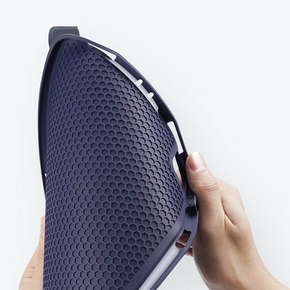 - Задната част е изработена от термополиуретанов силикон (TPU), който предпазва при удари и изпускания