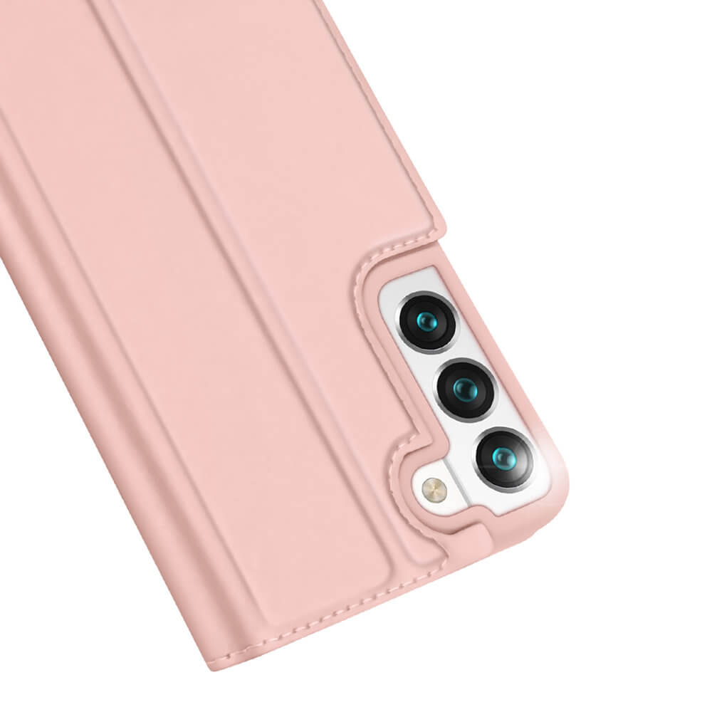 Dux Ducis Skin Pro Case - кожен калъф с поставка и отделение за кр. карти за Samsung Galaxy S22 (розов)