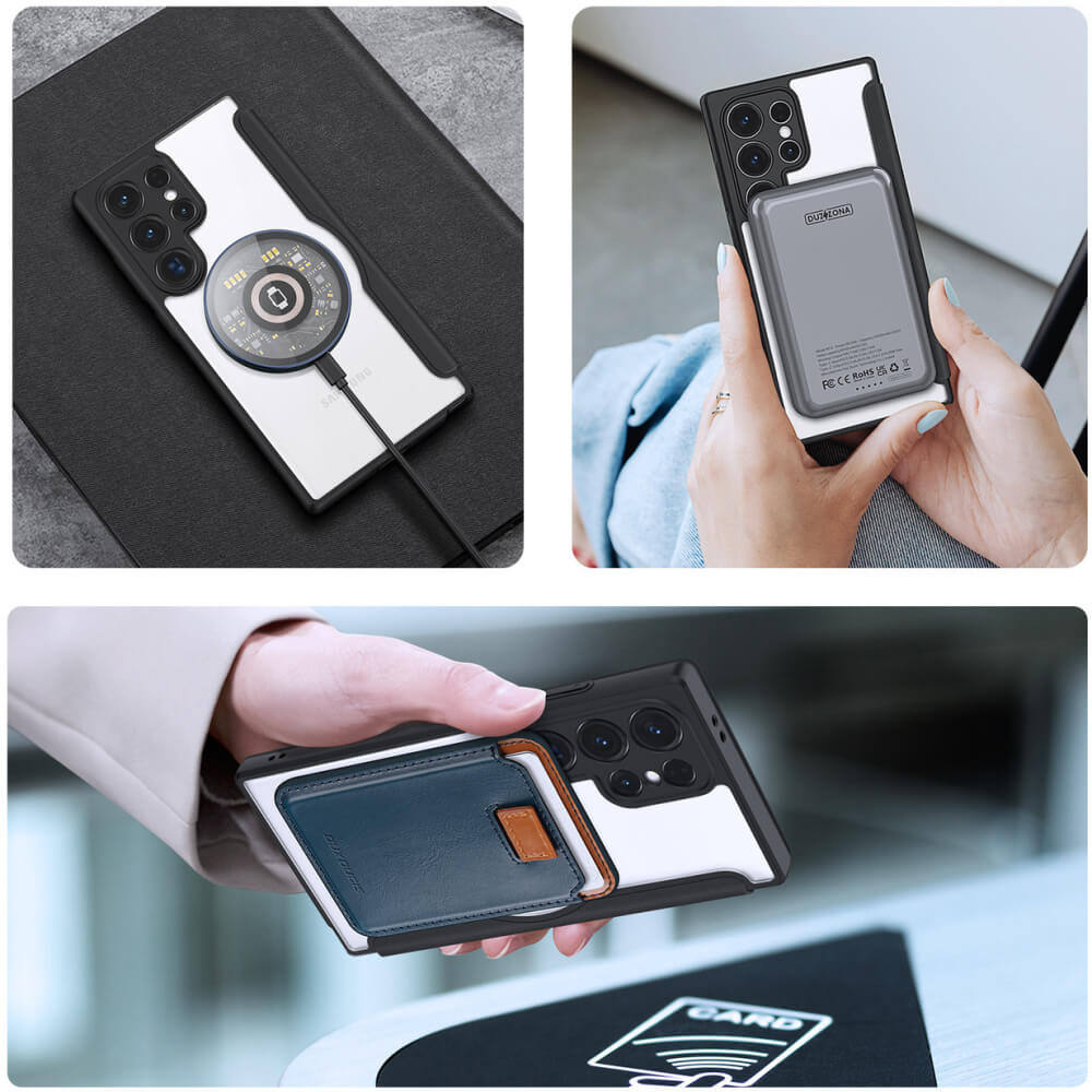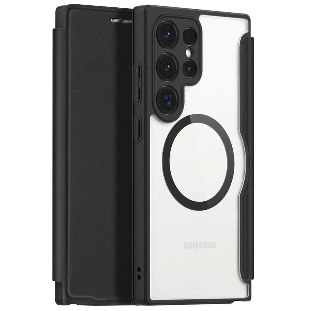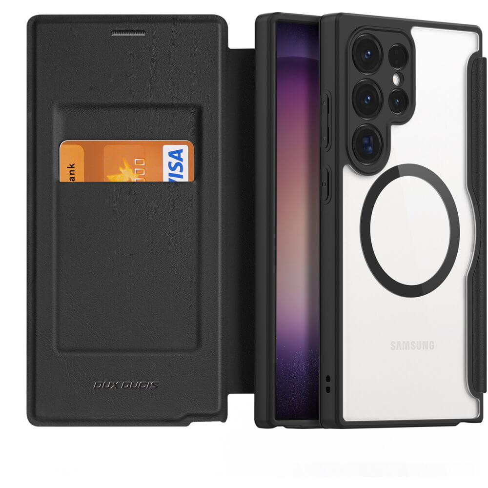 Dux Ducis Skin X Pro Magnetic Wallet Case - удароустойчив хибриден кожен кейс с отделение за карти и MagSafe за Samsung Galaxy S24 Ultra (черен-прозрачен)