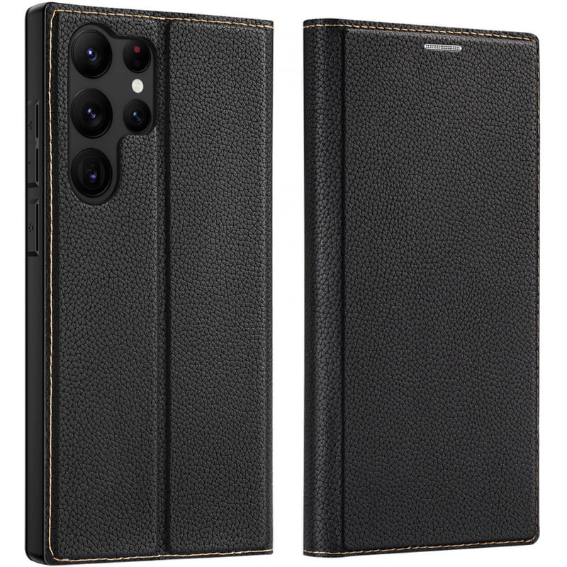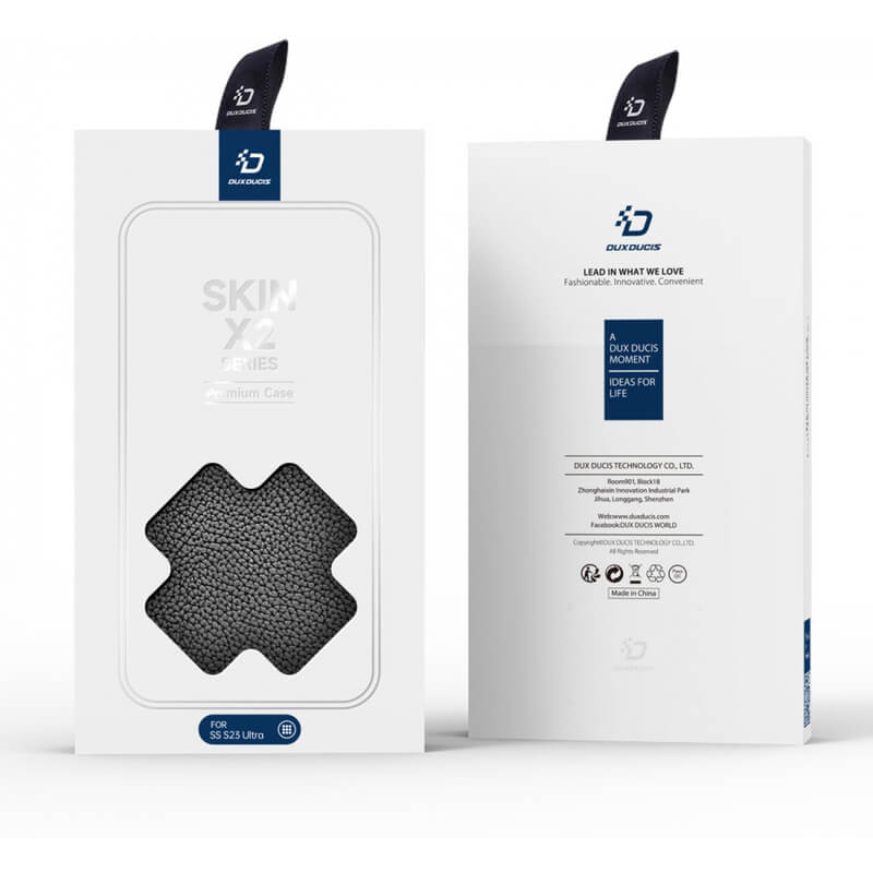 Dux Ducis Skin X2 Case - кожен калъф с поставка и отделение за кр. карти за Samsung Galaxy S23 Ultra (черен)