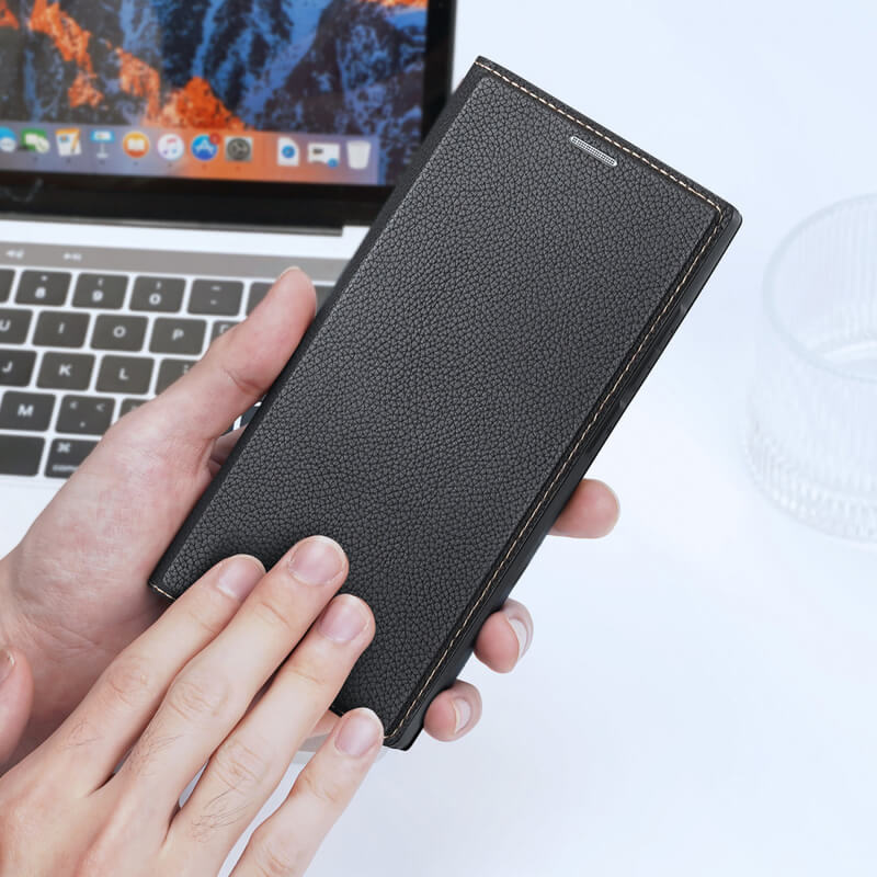 - Хоризонтален флип дизайн (подобно на портфейл) - не е нужно да вадите телефона от калъфа, за да го използвате