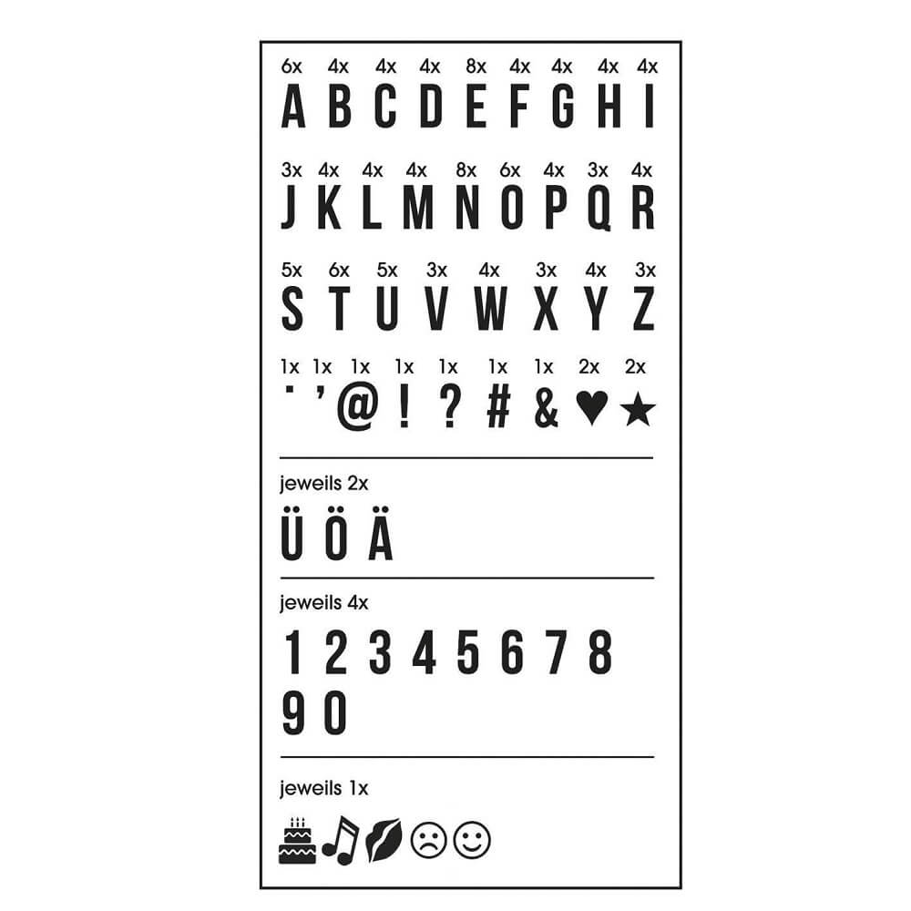 - Светещо табло с общо 173 взаимозаменяеми букви, цифри и символи