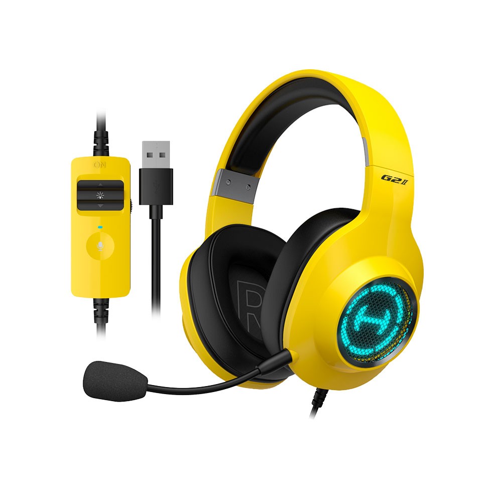 Edifier G2 II Over Ear Stereo Gaming Headset - USB геймърски слушалки с микрофон и управление на звука (жълт)