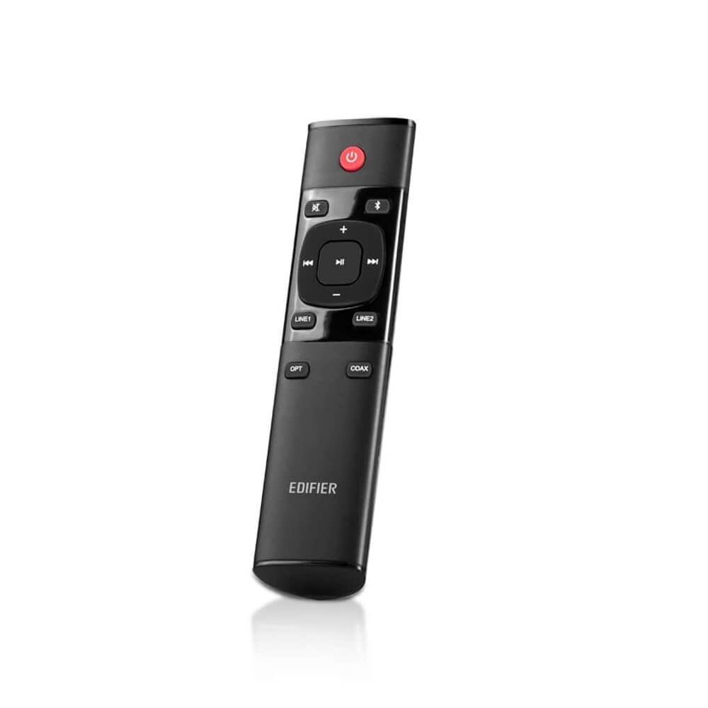- Разменяйте входовете, възпроизвеждайте или регулирайте силата на звука с включеното дистанционно управление. Поемете пълен контрол над звука си от дивана