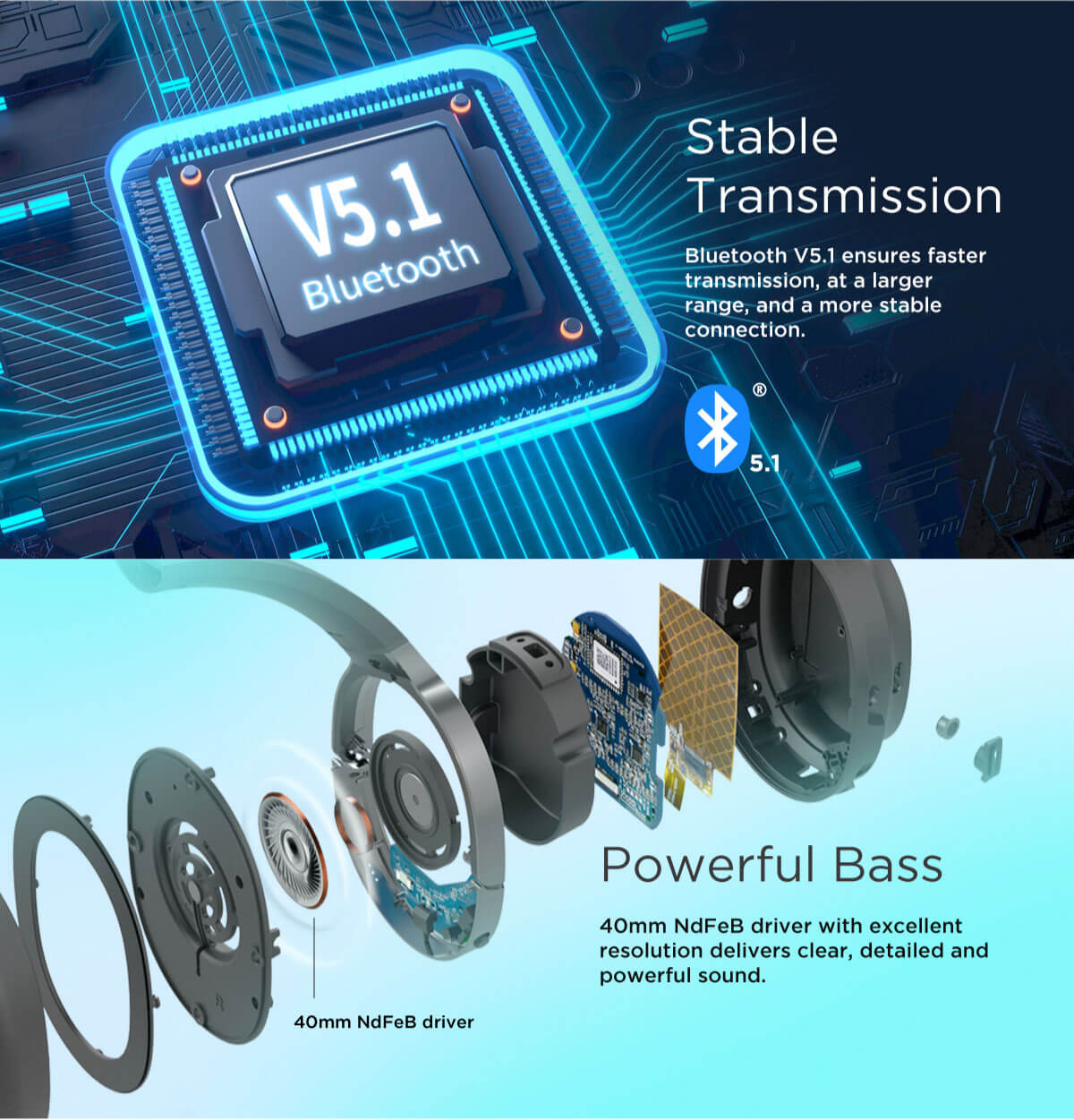 - Bluetooth версия 5.1 - Насладете се на висококачествено безжично възпроизвеждане с Bluetooth v5.1
