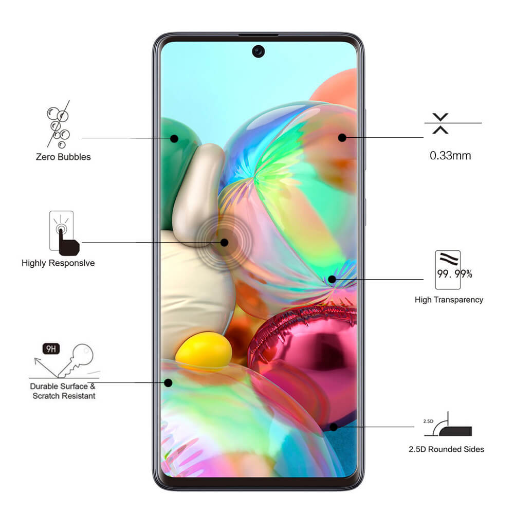 - Висококачествен стъклен скрийн протектор (защитно покритие) с извити ръбове за дисплея на вашето мобилно устройство