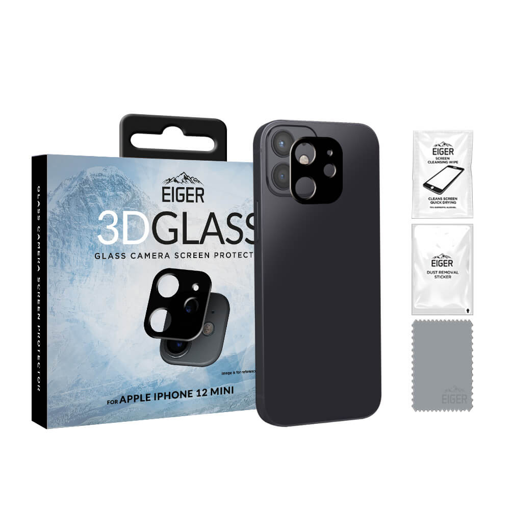 Eiger Glass 3D Camera Lens Protector - предпазен стъклен протектор за камерата на iPhone 12 mini (черен)