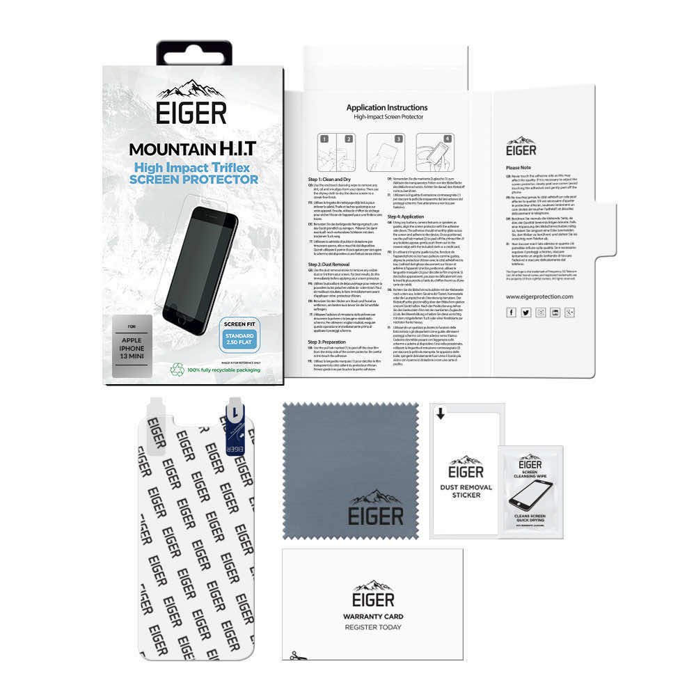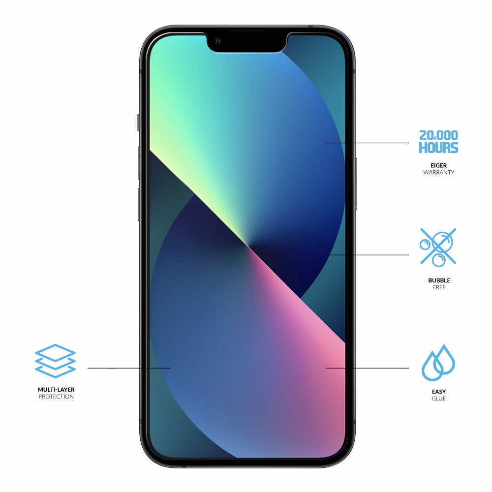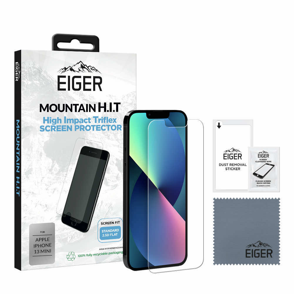 Eiger H.I.T. Screen Protector - качествено защитно покритие за дисплея на iPhone 13 mini (един брой)