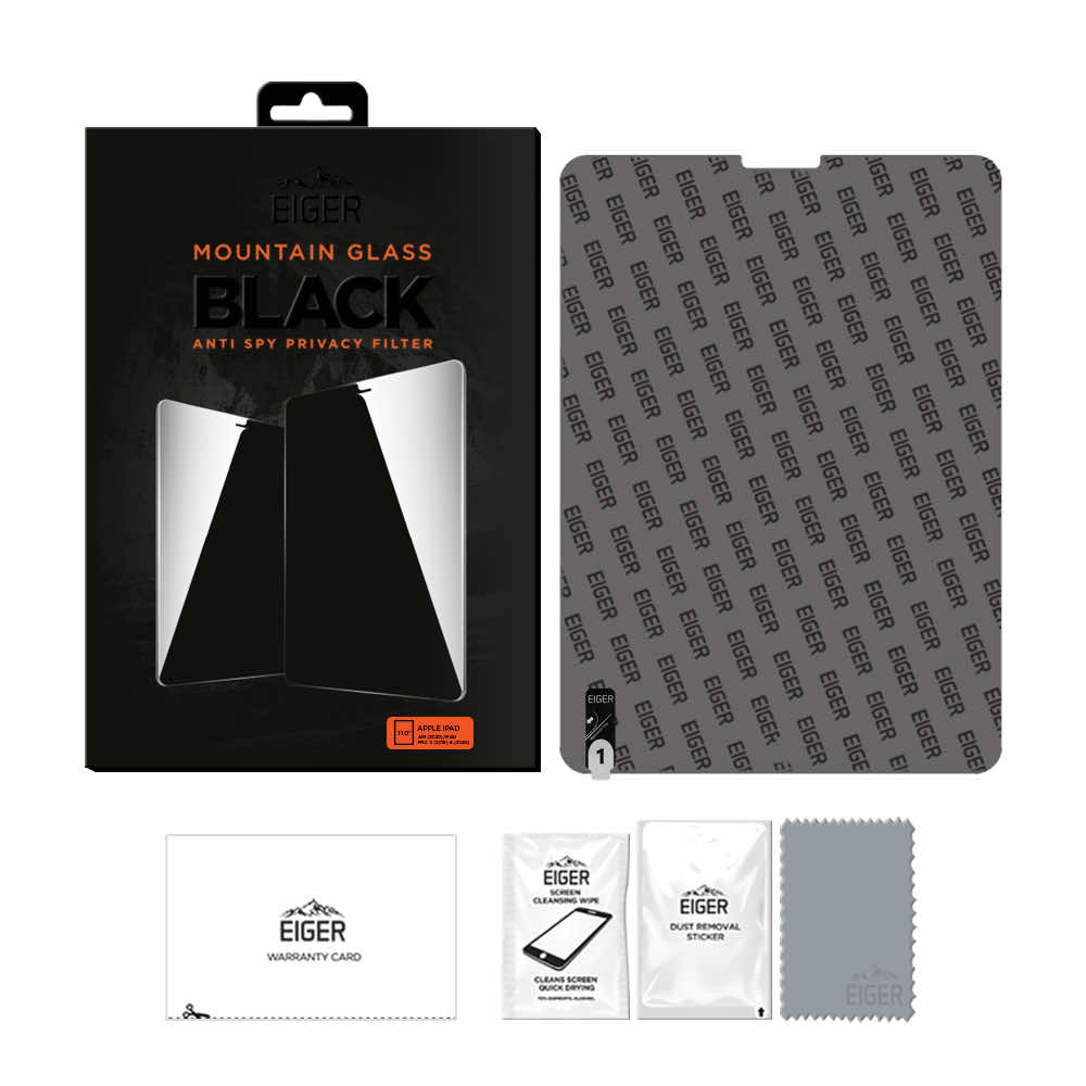 Eiger Mountain Glass Black Anti-Spy Privacy Filter Tempered Glass - калено стъклено защитно покритие с определен ъгъл на виждане за дисплея на iPad 11 Pro M1 (2021), iPad 11 Pro (2020), iPad 11 Pro (2018), iPad Air 5 (2022), iPad Air 4 (2020)