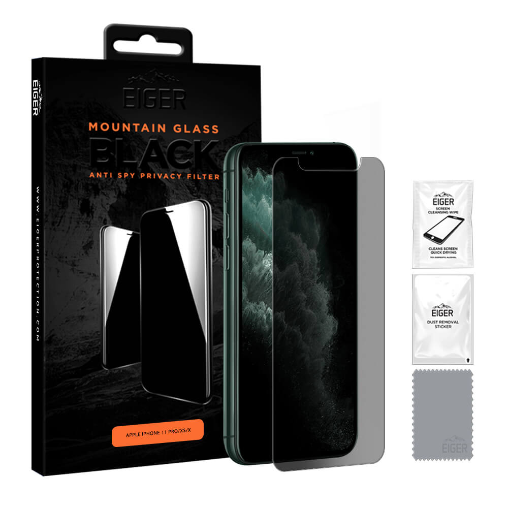 Eiger Mountain Glass Black Anti-Spy Privacy Filter Tempered Glass - калено стъклено защитно покритие с определен ъгъл на виждане за дисплея на iPhone 11 Pro, iPhone XS, iPhone X