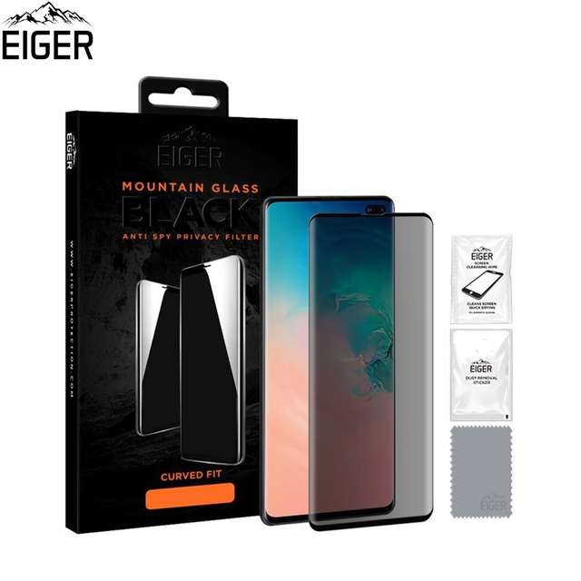 Eiger Mountain Glass Black Curved Anti-Spy Privacy Filter Tempered Glass - калено стъклено защитно покритие с извити ръбове и определен ъгъл на виждане за дисплея на Samsung Galaxy S10 Plus