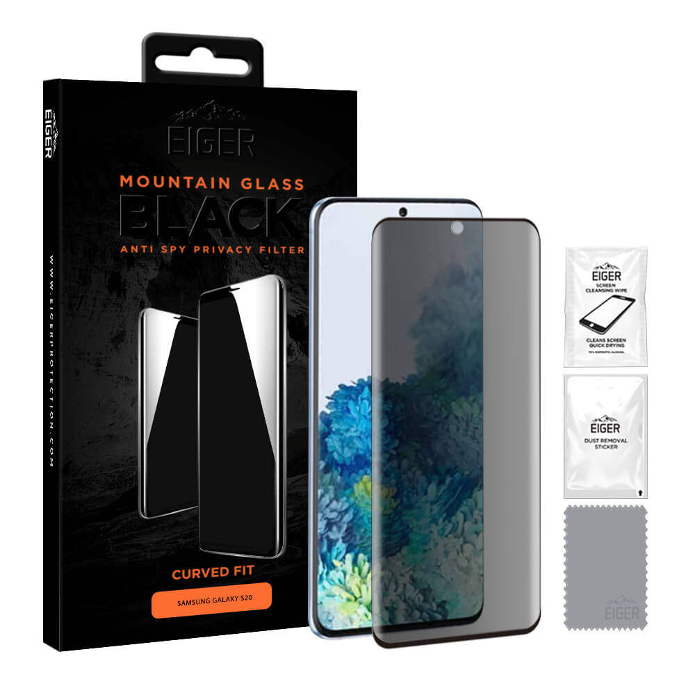 Eiger Mountain Glass Black Curved Anti-Spy Privacy Filter Tempered Glass - калено стъклено защитно покритие с извити ръбове и определен ъгъл на виждане за дисплея на Samsung Galaxy S20