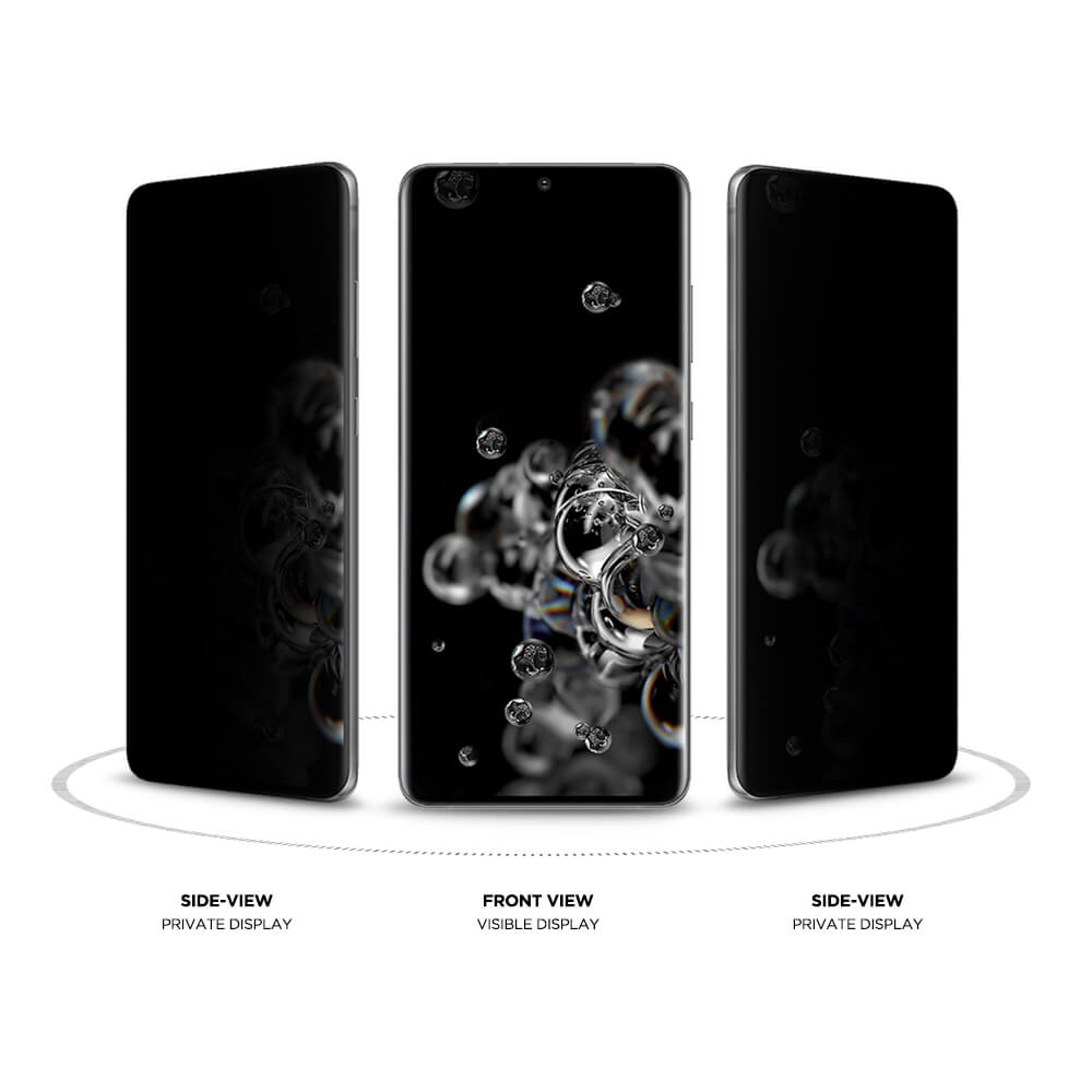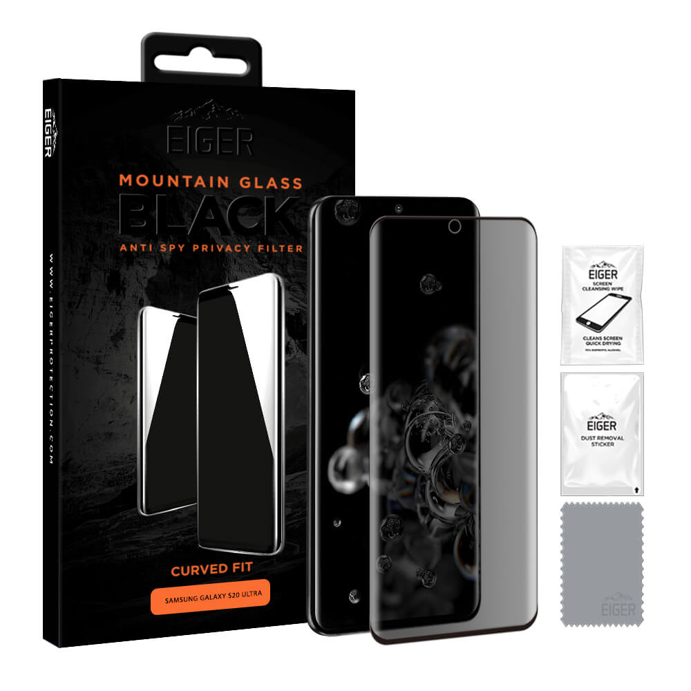Eiger Mountain Glass Black Curved Anti-Spy Privacy Filter Tempered Glass - калено стъклено защитно покритие с извити ръбове и определен ъгъл на виждане за дисплея на Samsung Galaxy S20 Ultra