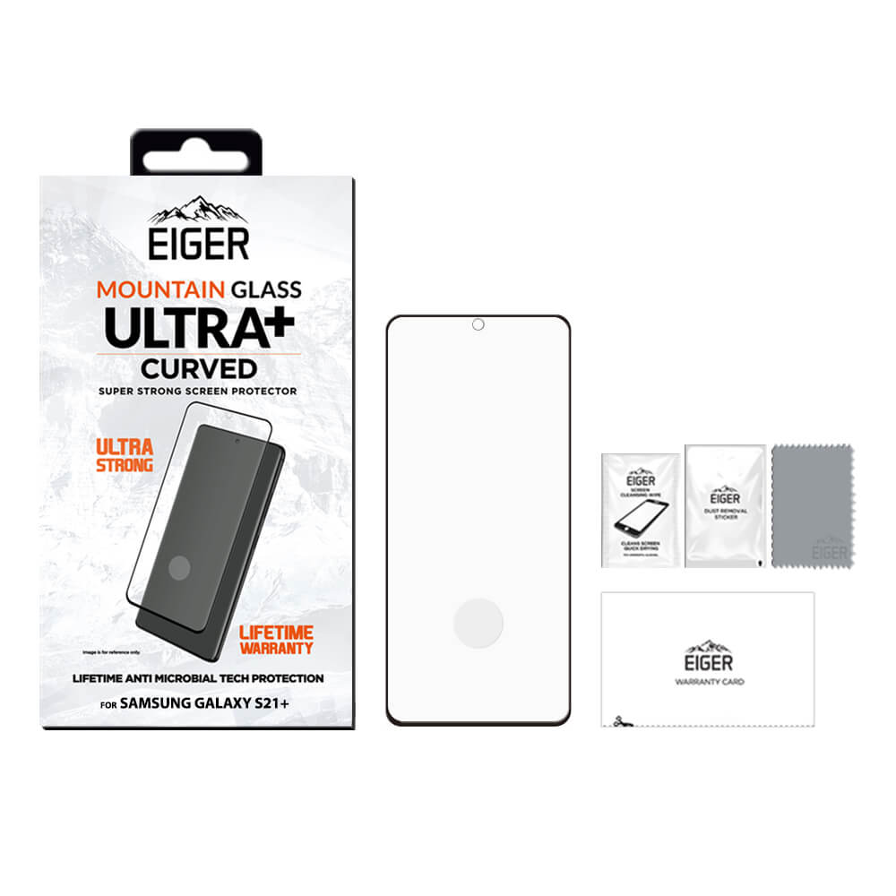 Eiger Mountain Glass Ultra Plus Tempered Glass - калено стъклено защитно покритие с извити ръбове за дисплея на Samsung Galaxy S21 Plus (прозрачен)