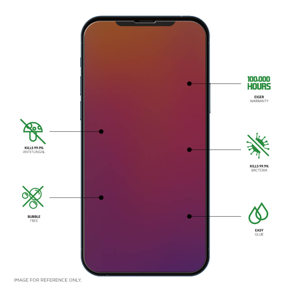 Eiger Mountian Glass Plus Screen Protector 2.5D - калено стъклено защитно покритие с антибактериален слой за дисплея на iPhone 13, iPhone 13 Pro (прозрачен)