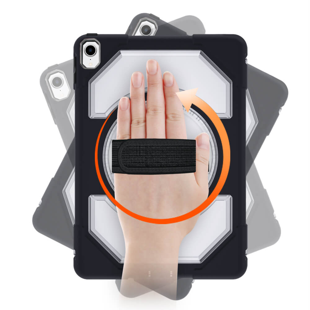 - Кейсът разполага и с въртяща се на 360° поставка, както и с лента за ръка
