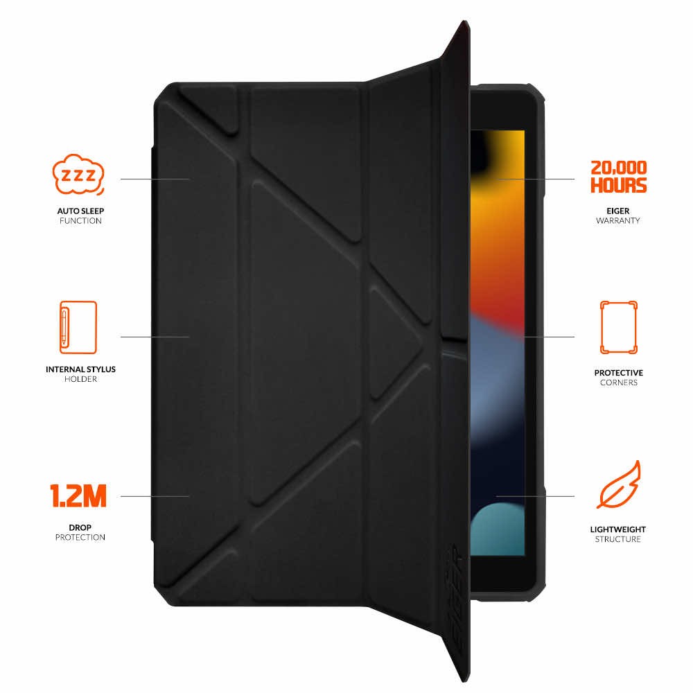 Eiger Storm 500m Case - удароустойчив кейс, тип папка и поставка за iPad 9 (2021), iPad 8 (2020), iPad 7 (2019) (черен)