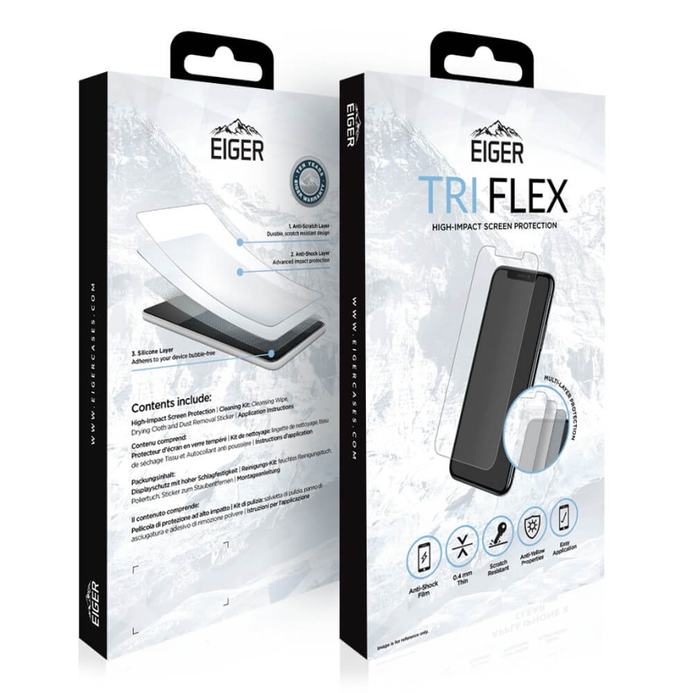 - С дебелина от 0.4 мм и твърдост 5H, Eiger Tri Flex е едно от най-добрите защитни покрития на пазара