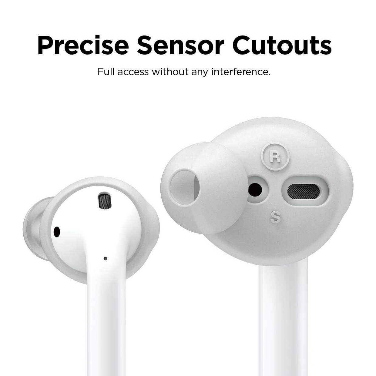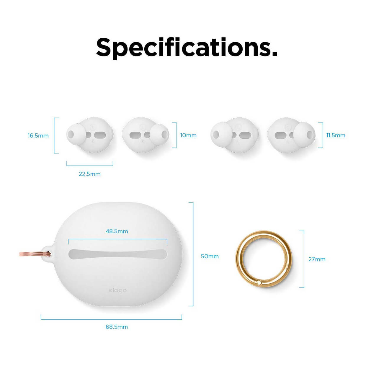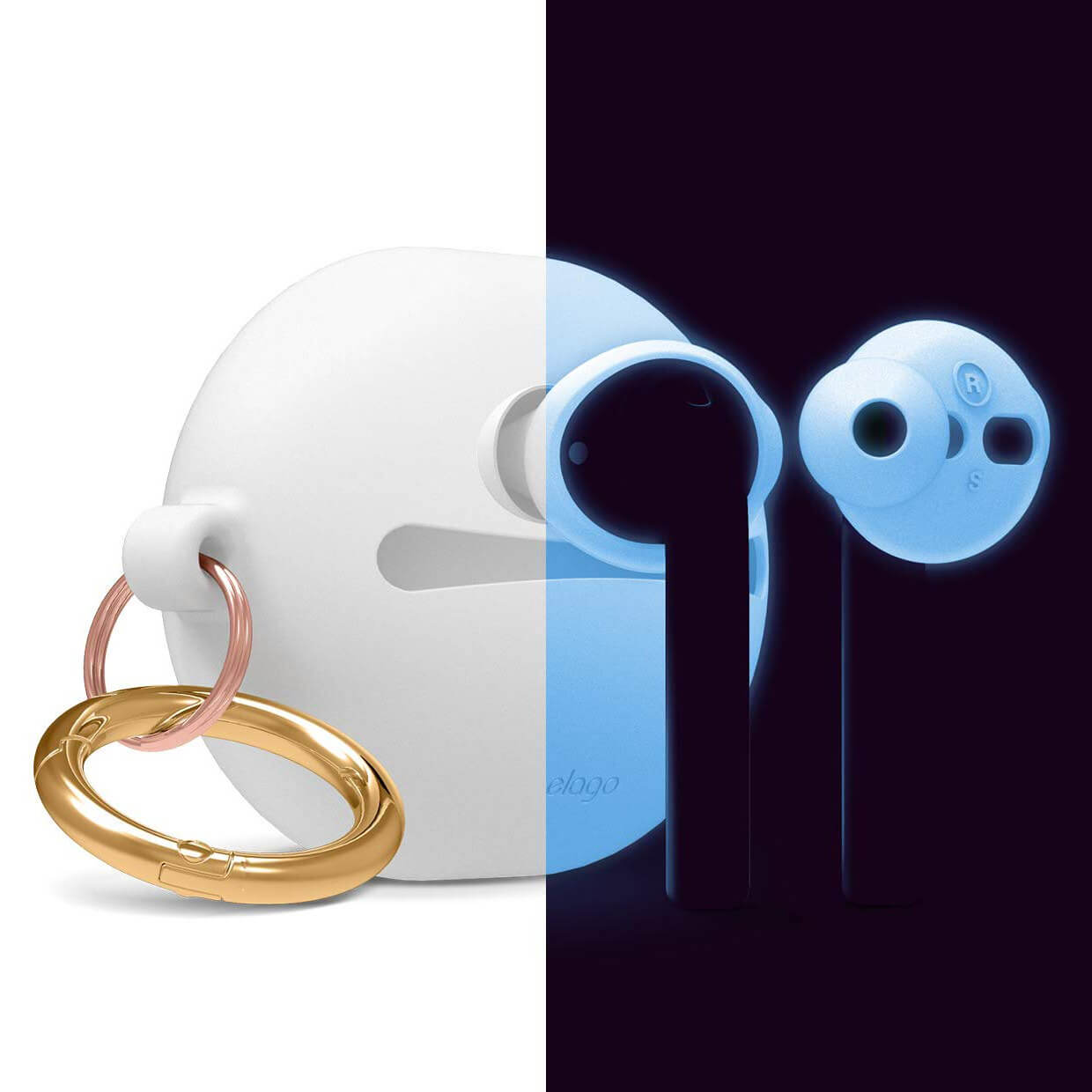 Elago Airpods Basic Cover with Carrying Pouch Case - силиконов калъф с карабинер и силиконови накрайници за Apple Airpods и Apple Airpods 2 (бял-фосфор)