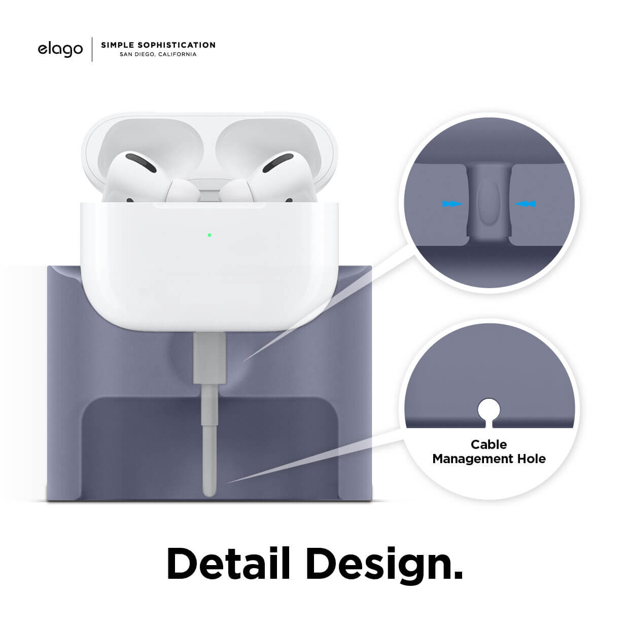 Elago Airpods Charging Station Pro - силиконова док станция за зареждане на Apple Airpods & Apple Airpods Pro (лилава)