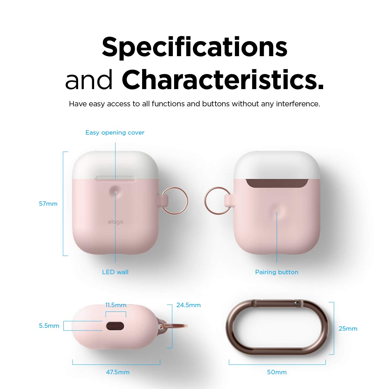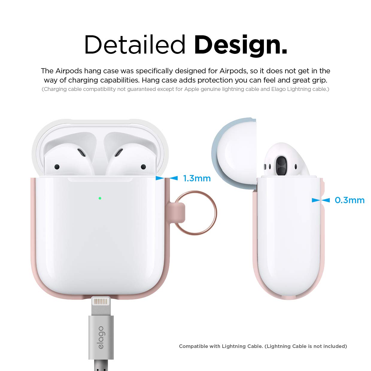 Elago Airpods Duo Hang Silicone Case - силиконов калъф за Apple Airpods 2 with Wireless Charging Case (розов-бял)