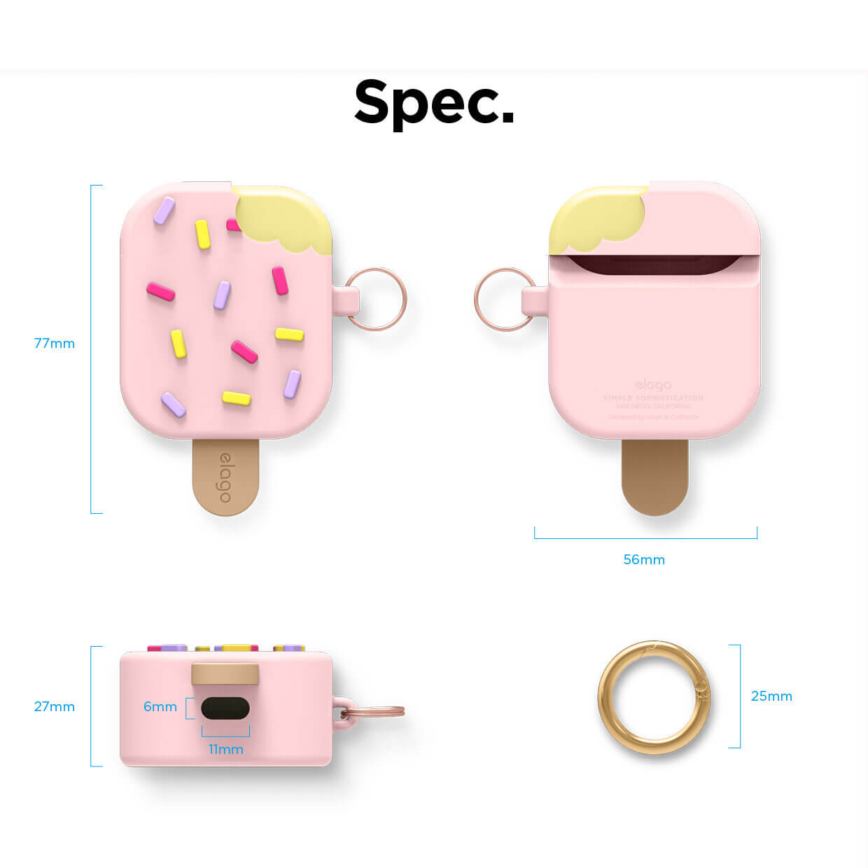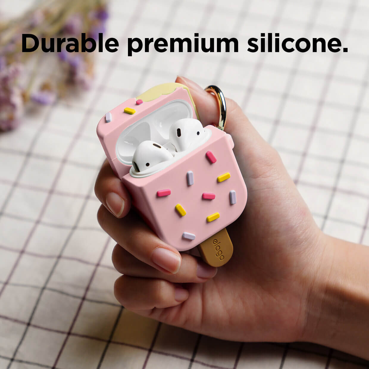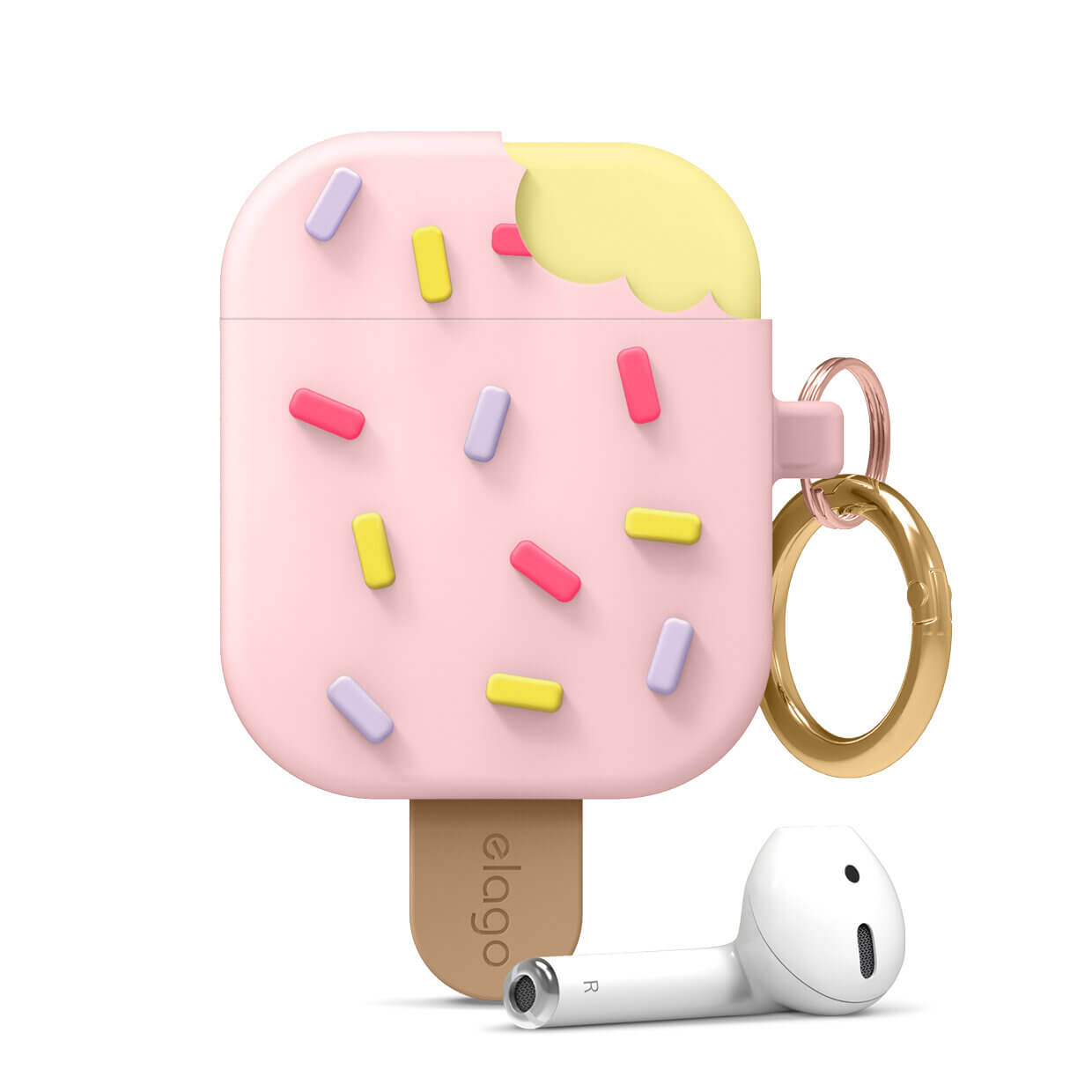 Elago Airpods Ice Cream Design Silicone Case - силиконов калъф с карабинер за Apple Airpods и Apple Airpods 2 (розов)