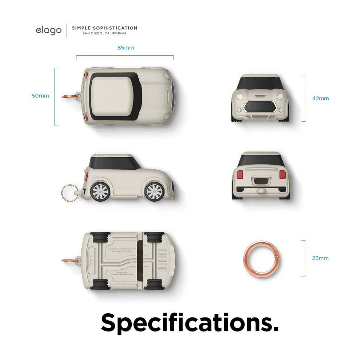 Elago Airpods Mini Car Design Silicone Case - силиконов калъф с карабинер за Apple Airpods и Apple Airpods 2 (бял)