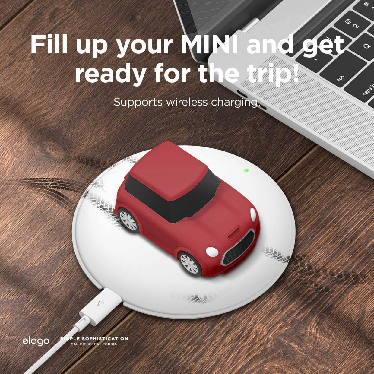 Elago Airpods Mini Car Design Silicone Case - силиконов калъф с карабинер за Apple Airpods и Apple Airpods 2 (червен)
