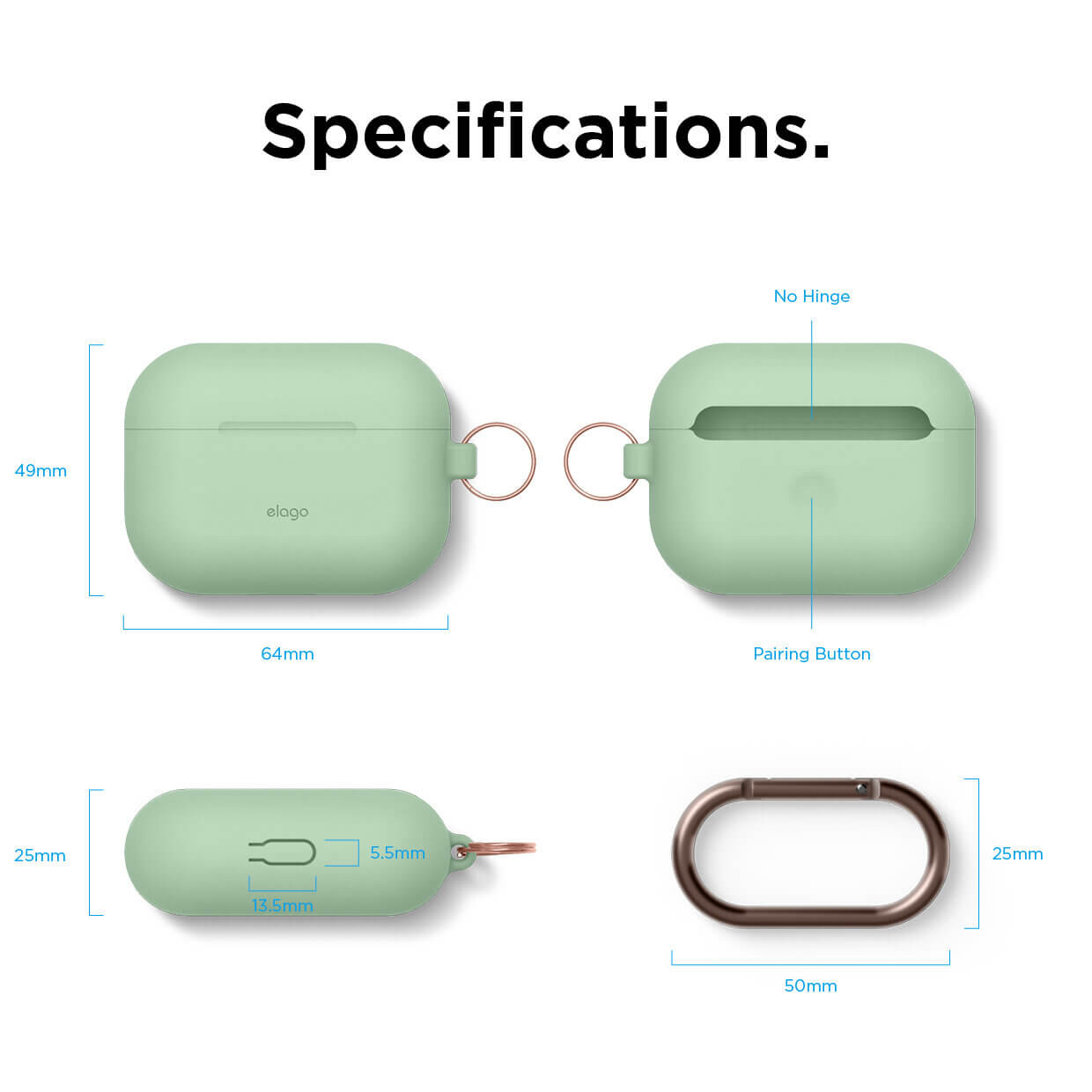 Elago Airpods Original Hang Silicone Case - силиконов калъф с карабинер за Apple Airpods Pro (светлозелен)