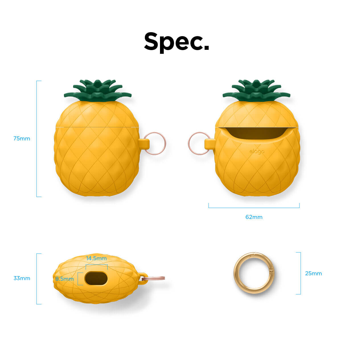Elago Airpods Pineapple Design Silicone Case - силиконов калъф с карабинер за Apple Airpods и Apple Airpods 2 (оранжев)