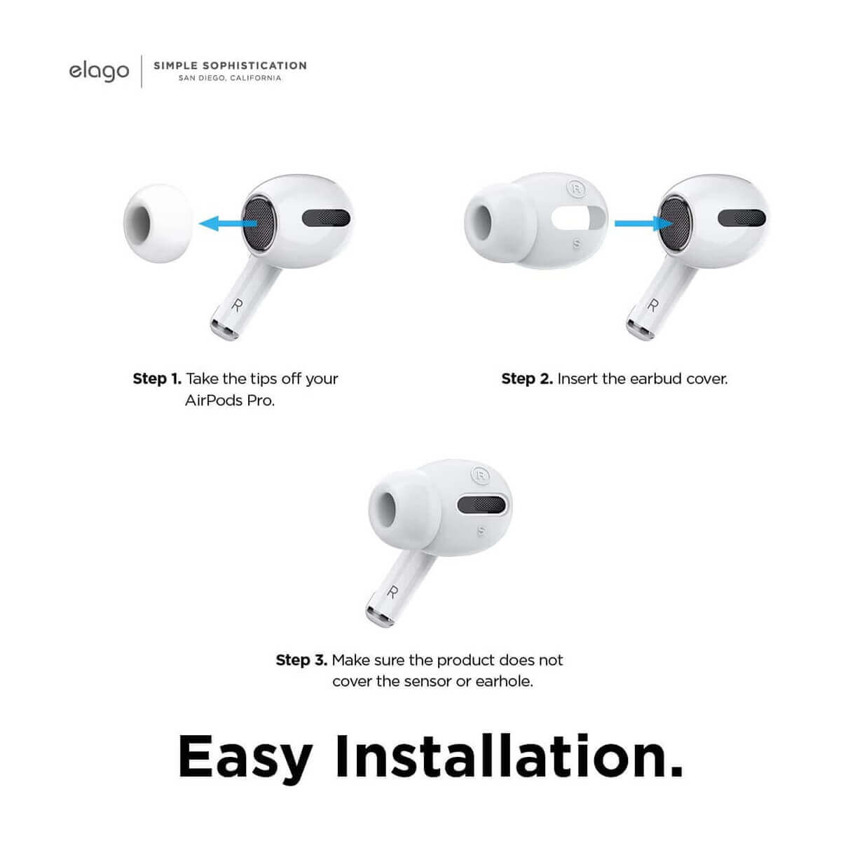Elago Airpods Pro Earbuds Cover Plus Tips - антибактериални силиконови калъфчета с вградени тапички за Apple Airpods Pro (6 чифта) (бял-фосфор)