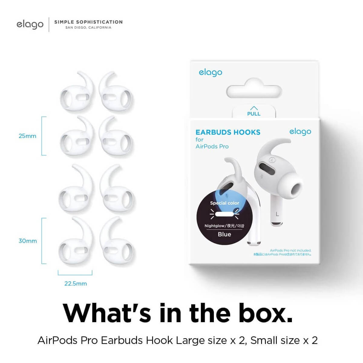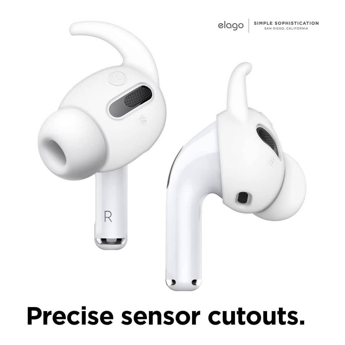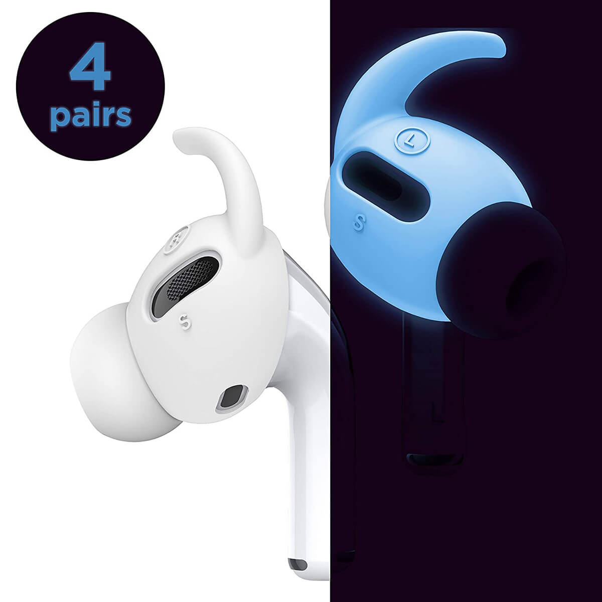 Elago Airpods Pro Earbuds Hooks - антибактериални силиконови калъфчета с вградени кукички за Apple Airpods Pro (4 чифта) (бял-фосфор)