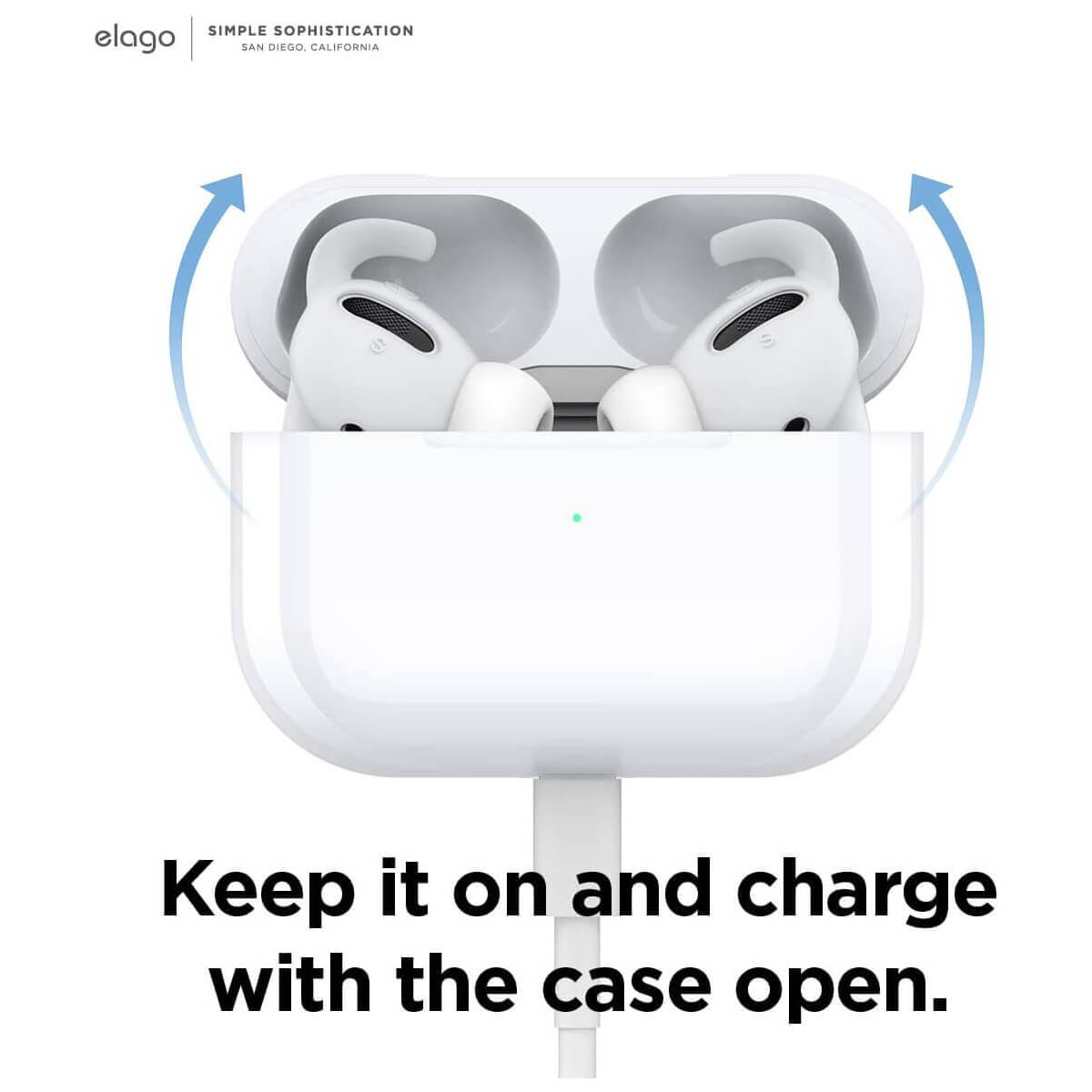- Внимание: можете да зареждате вашите Apple Airpods Pro с поставените калъфчета, но капакът трябва да бъде отворен
