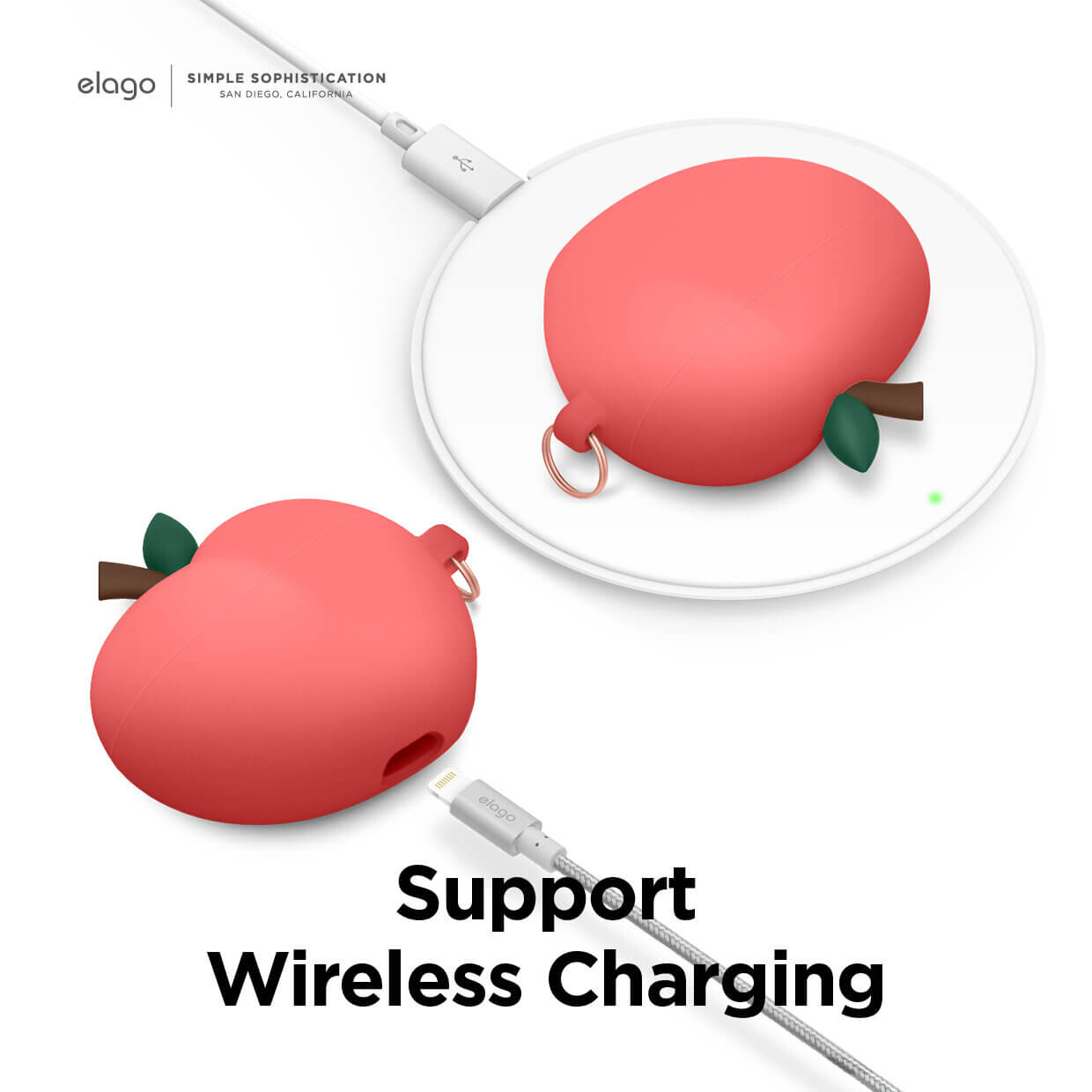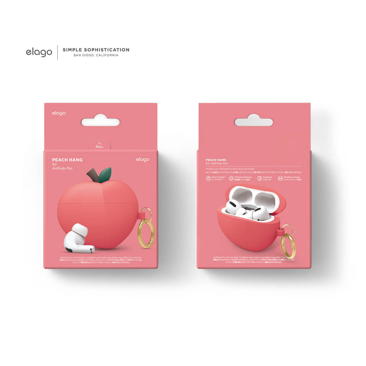 Elago Airpods Pro Peach Design Silicone Case - силиконов калъф с карабинер за Apple Airpods Pro (червен)