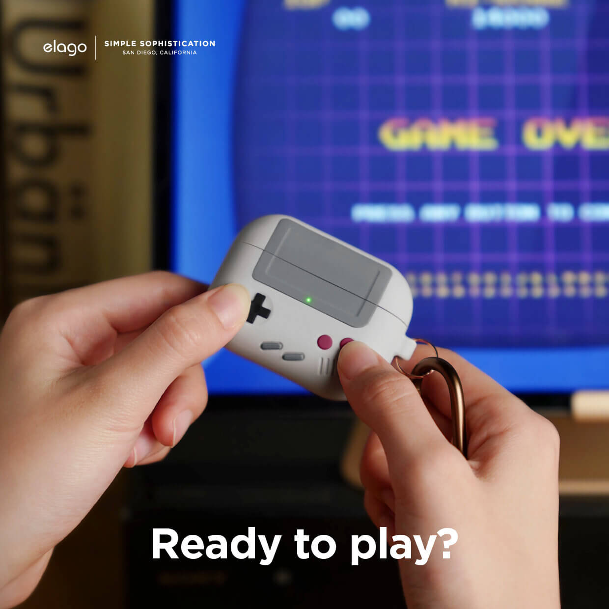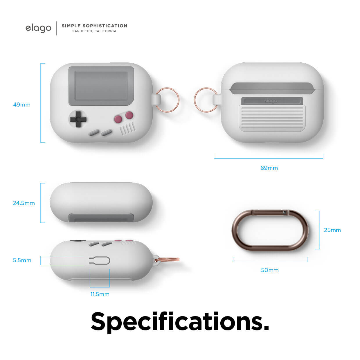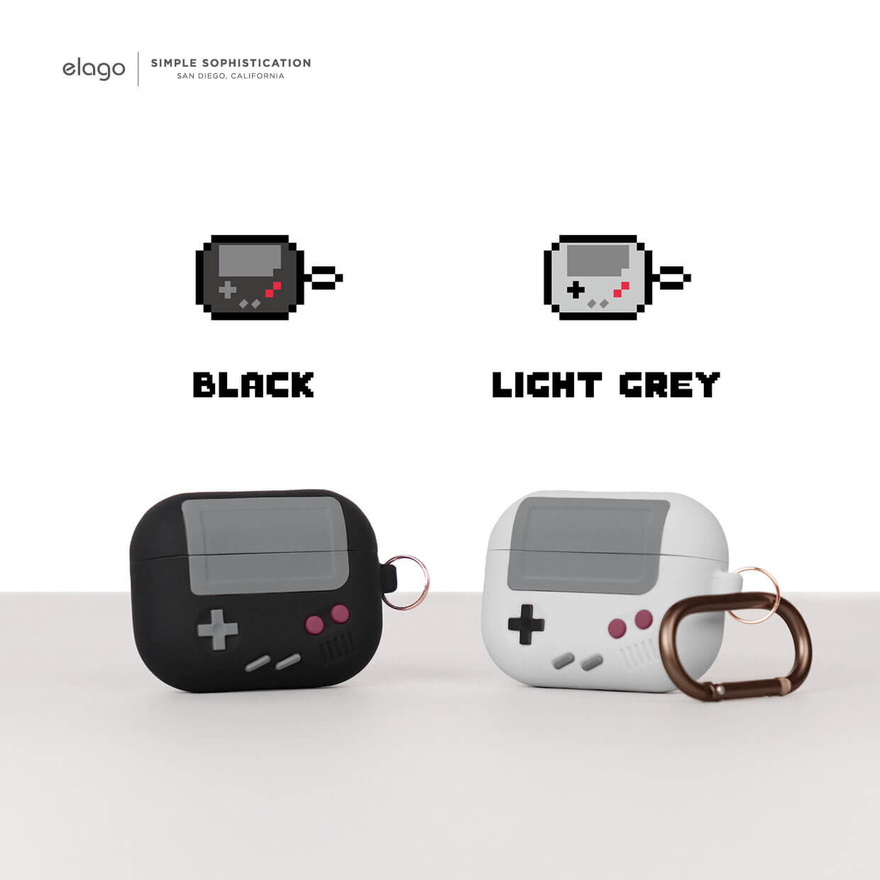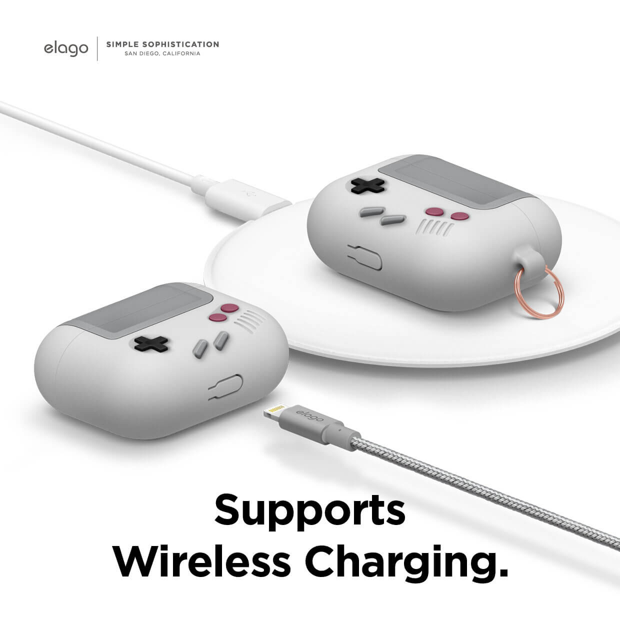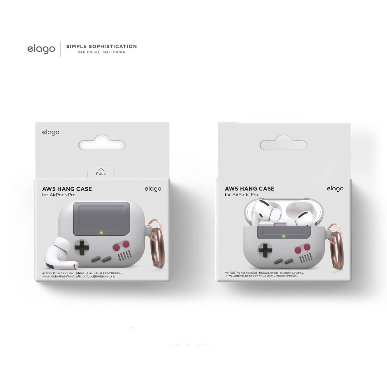 Elago Airpods Pro Retro AW5 Silicone Hang Case - силиконов калъф с карабинер за Apple Airpods Pro (светлосив)