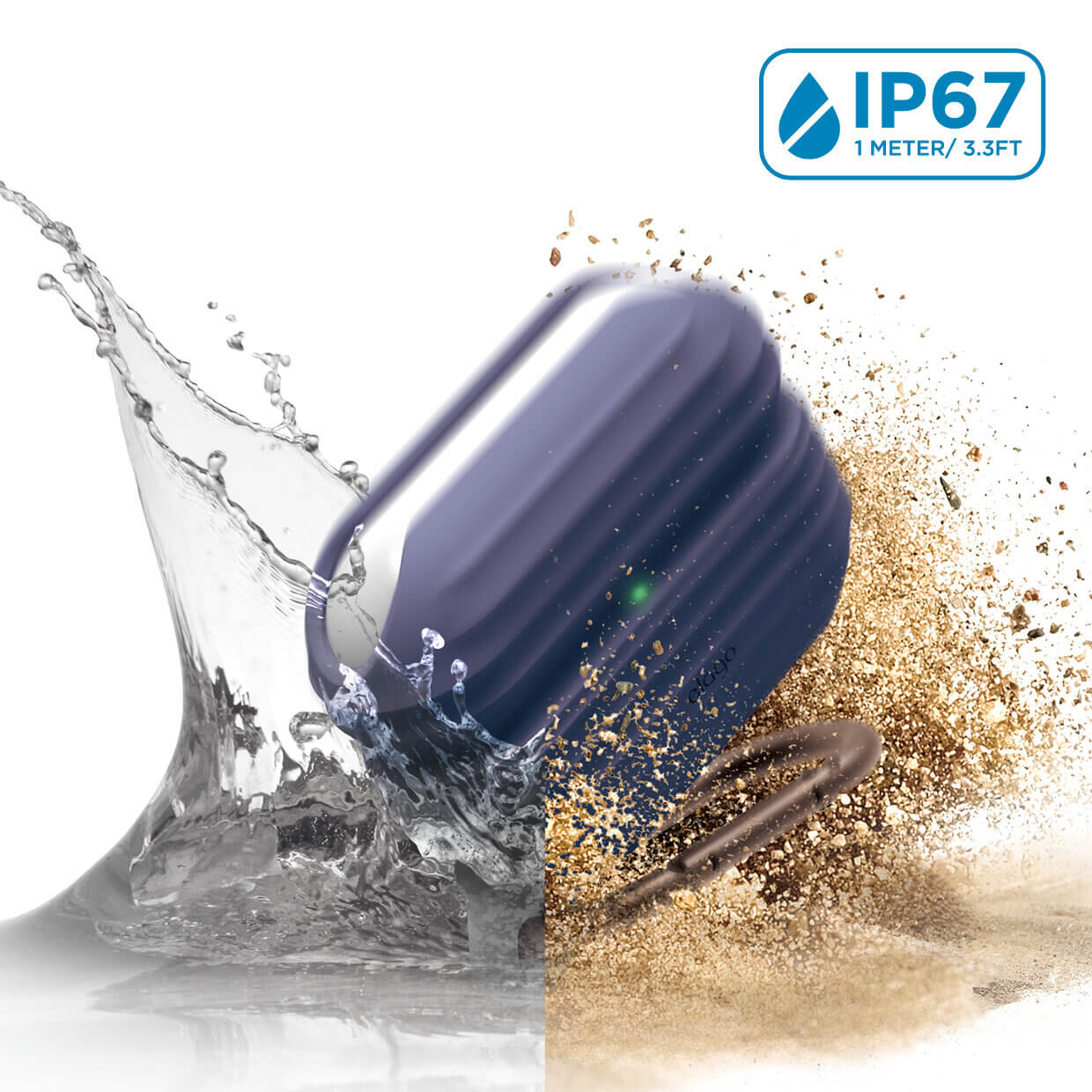 - Водоустойчив силиконов калъф за Apple Airpods Pro, снабден със сертификат IP67 и устойчив на потапяне до 1 метър дълбочина във вода