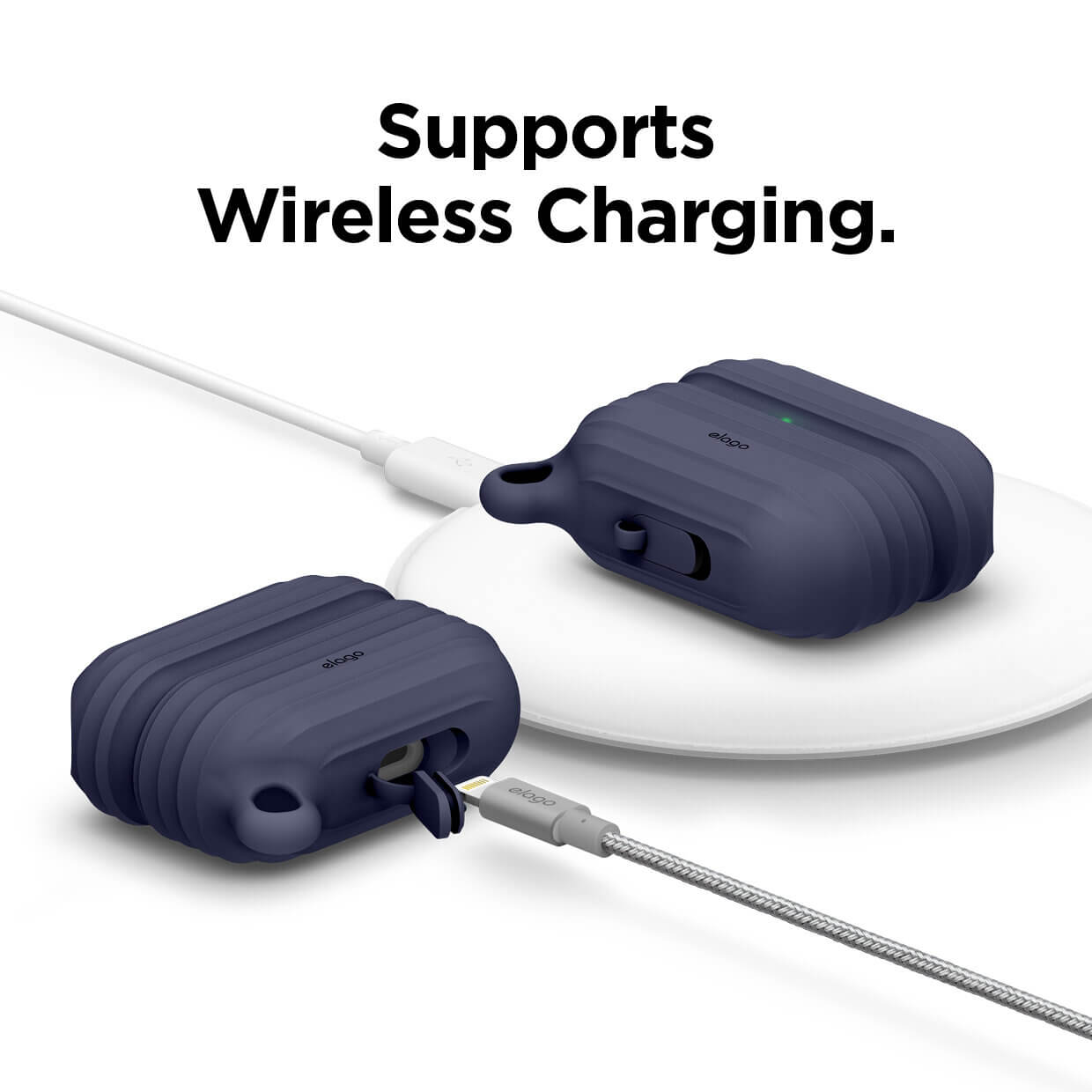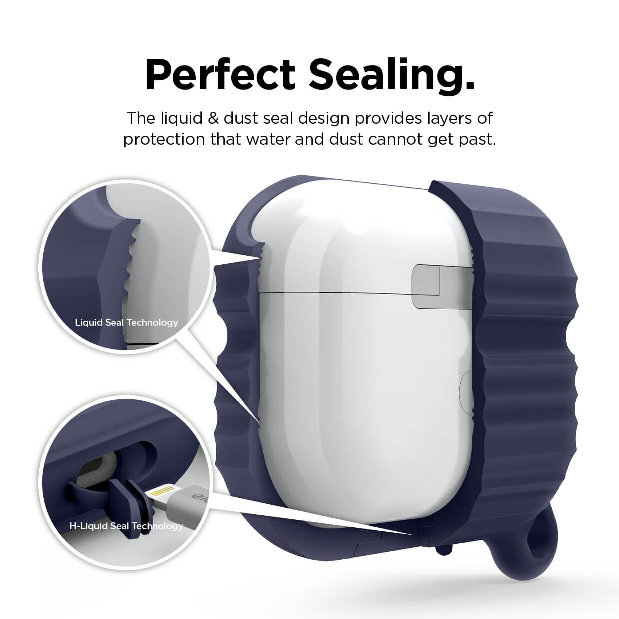 Elago Airpods Pro Waterproof Hang Case - водоустойчив силиконов калъф с карабинер за Apple Airpods Pro (тъмносин)