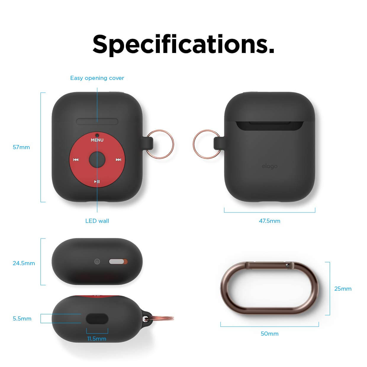 Elago Airpods Retro AW6 Hang Case - силиконов калъф с карабинер за Apple Airpods и Apple Airpods 2 (черен)