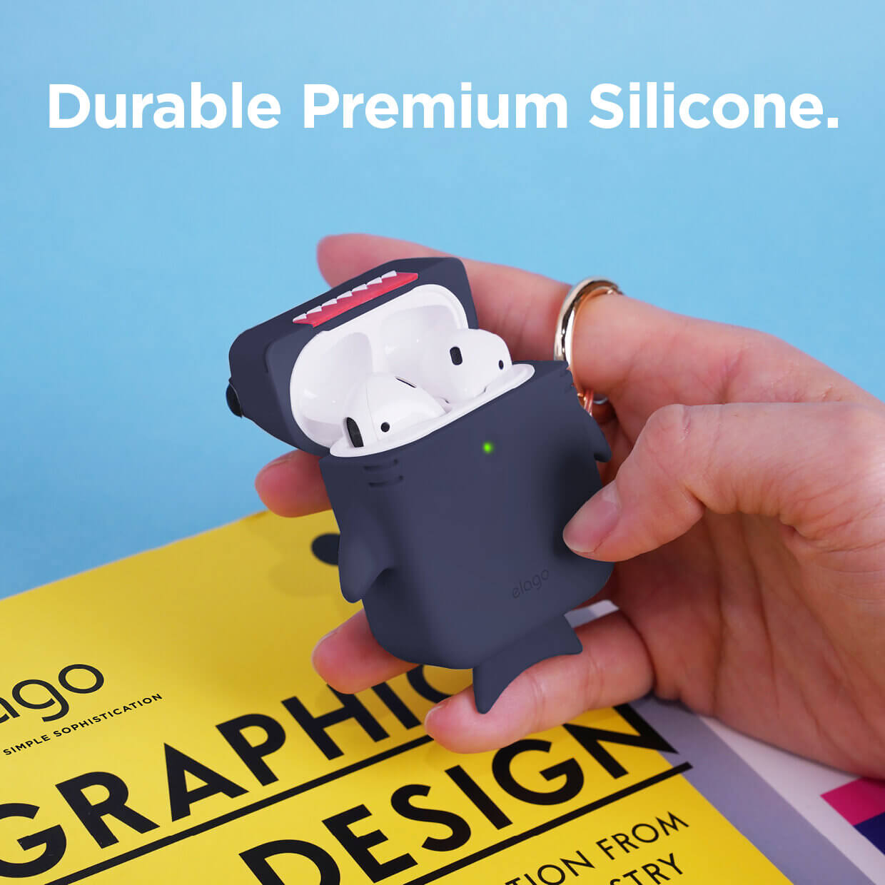 Elago Airpods Shark Design Silicone Case - силиконов калъф с карабинер за Apple Airpods и Apple Airpods 2 (син)