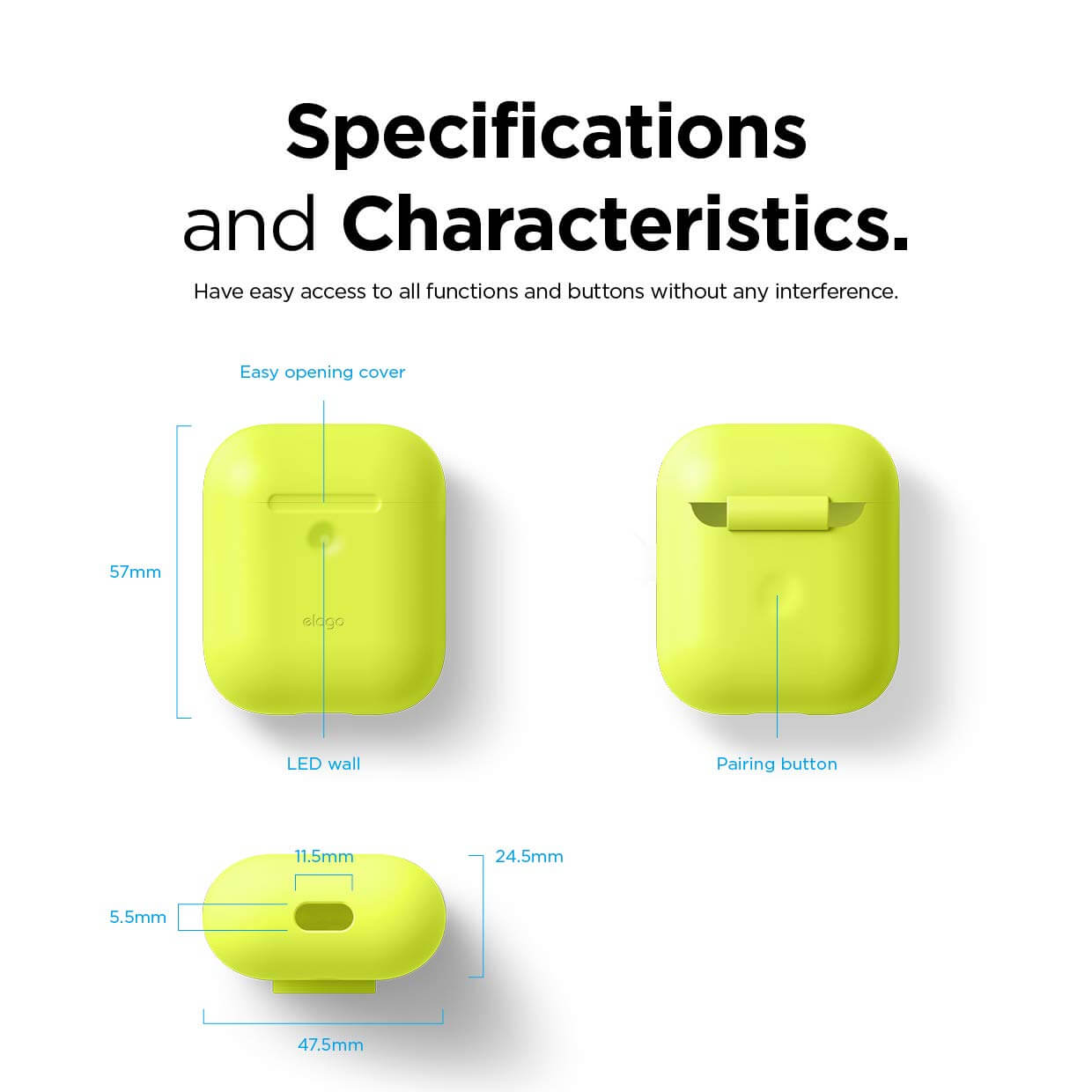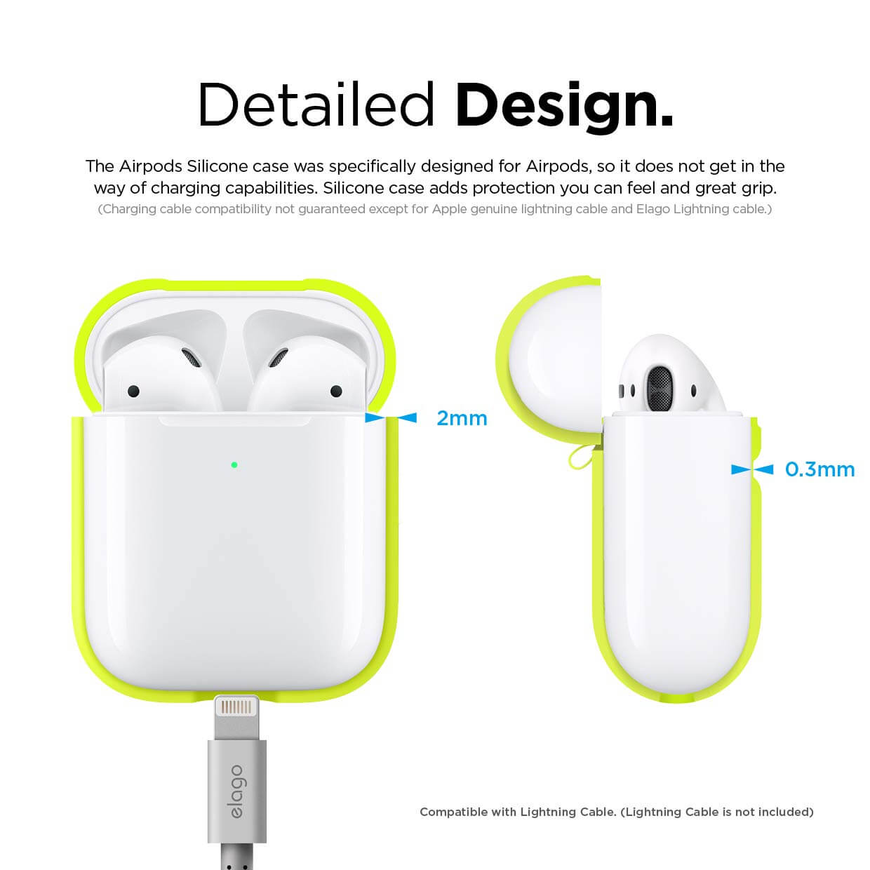 Elago Airpods Silicone Case - силиконов калъф за Apple Airpods 2 with Wireless Charging Case (жълт-фосфор)