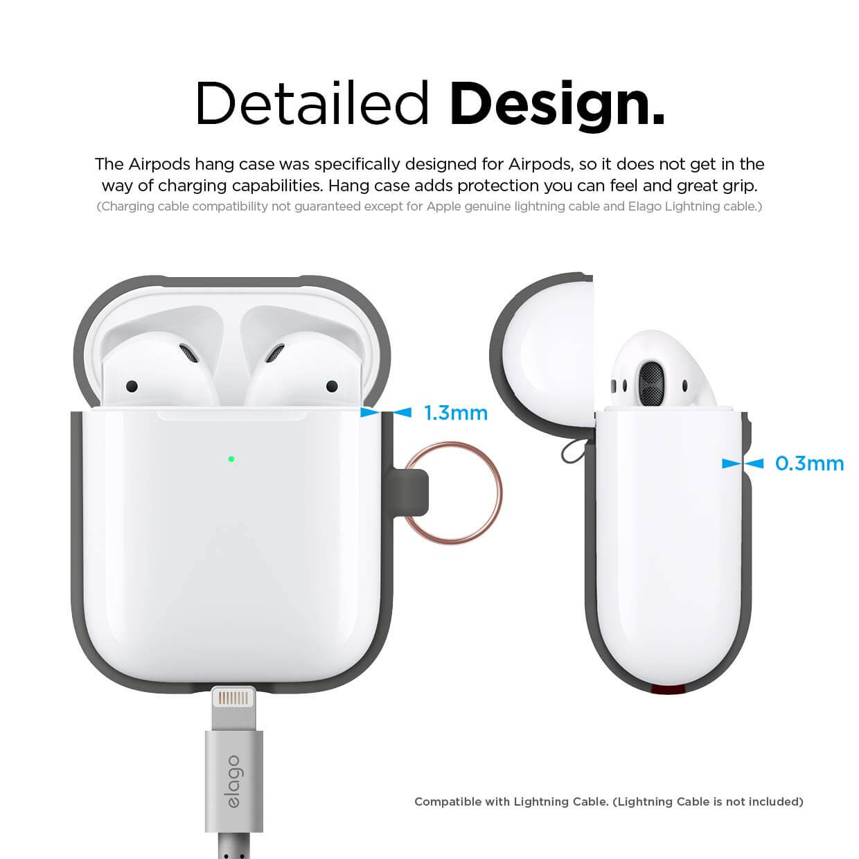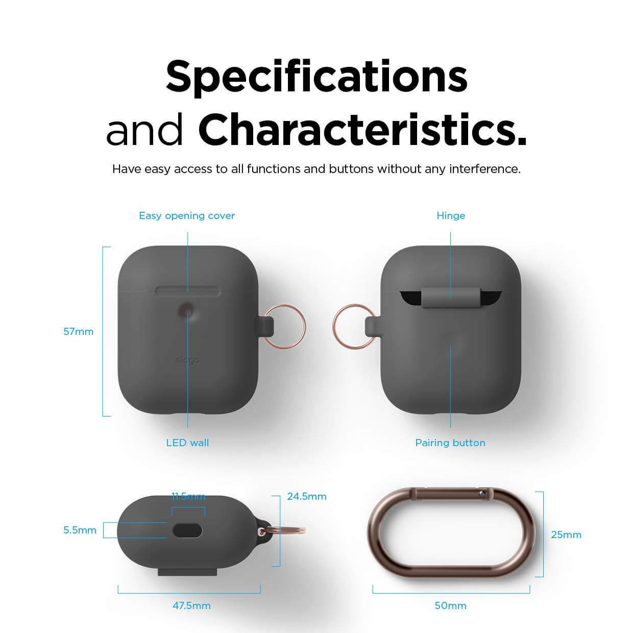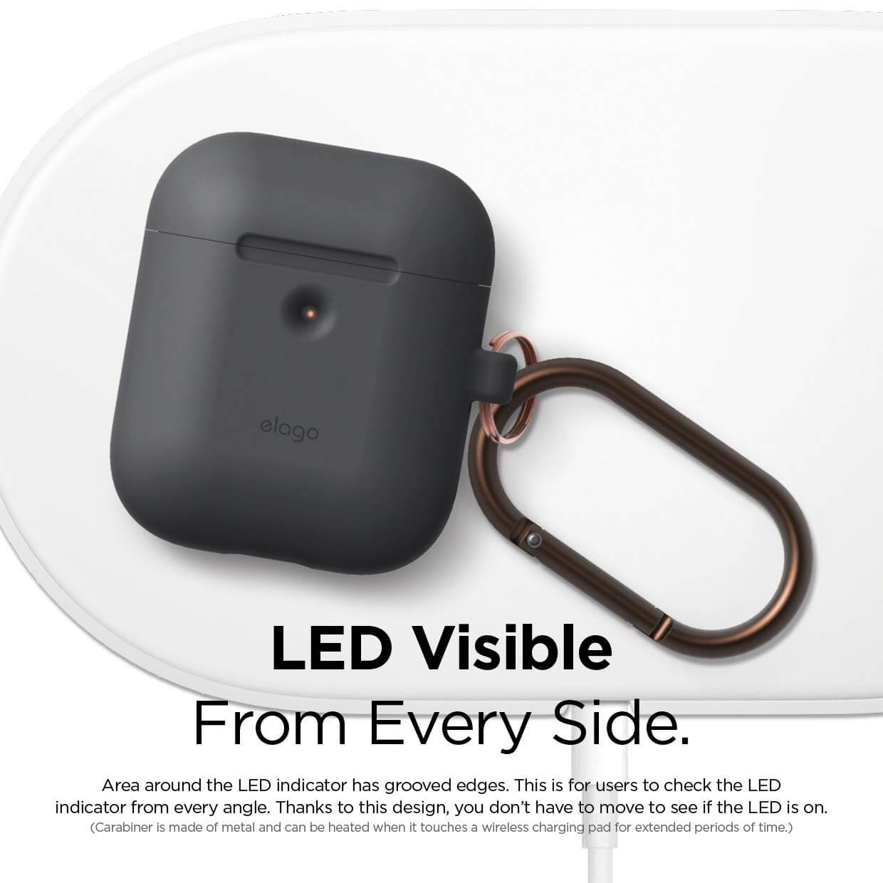 Elago Airpods Silicone Hang Case - силиконов калъф с карабинер за Apple Airpods 2 with Wireless Charging Case (тъмносив)