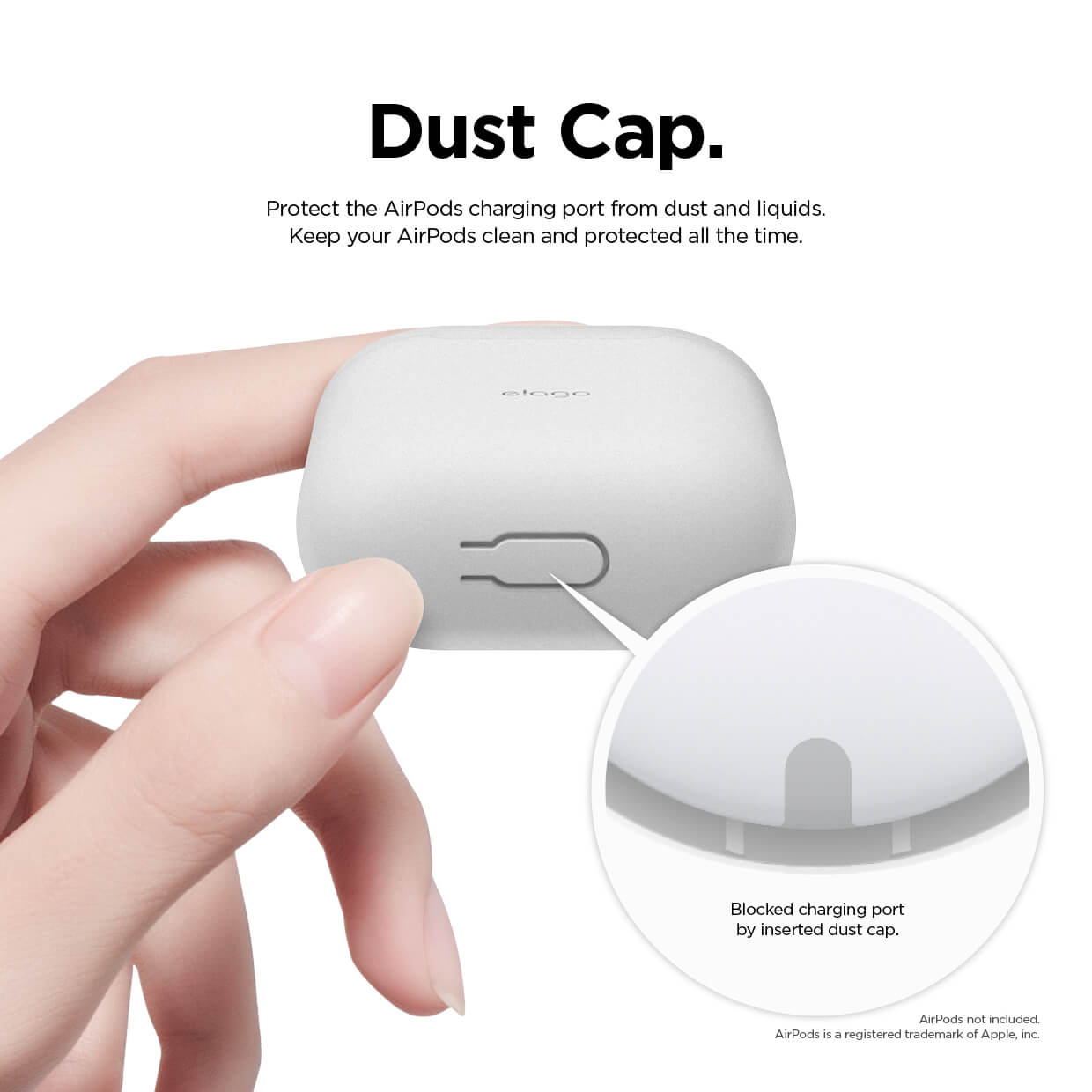 Elago Airpods Skinny Silicone Case - тънък силиконов калъф за Apple Airpods и Apple Airpods 2 with Wireless Charging Case (бял-фосфор)