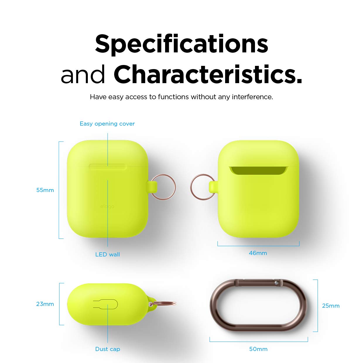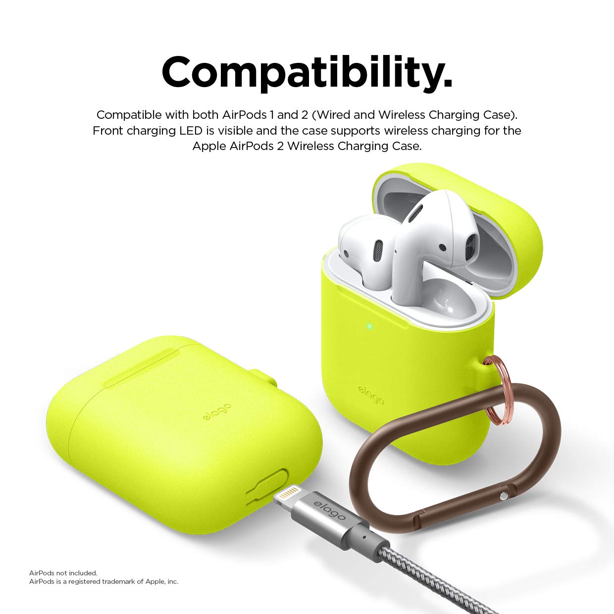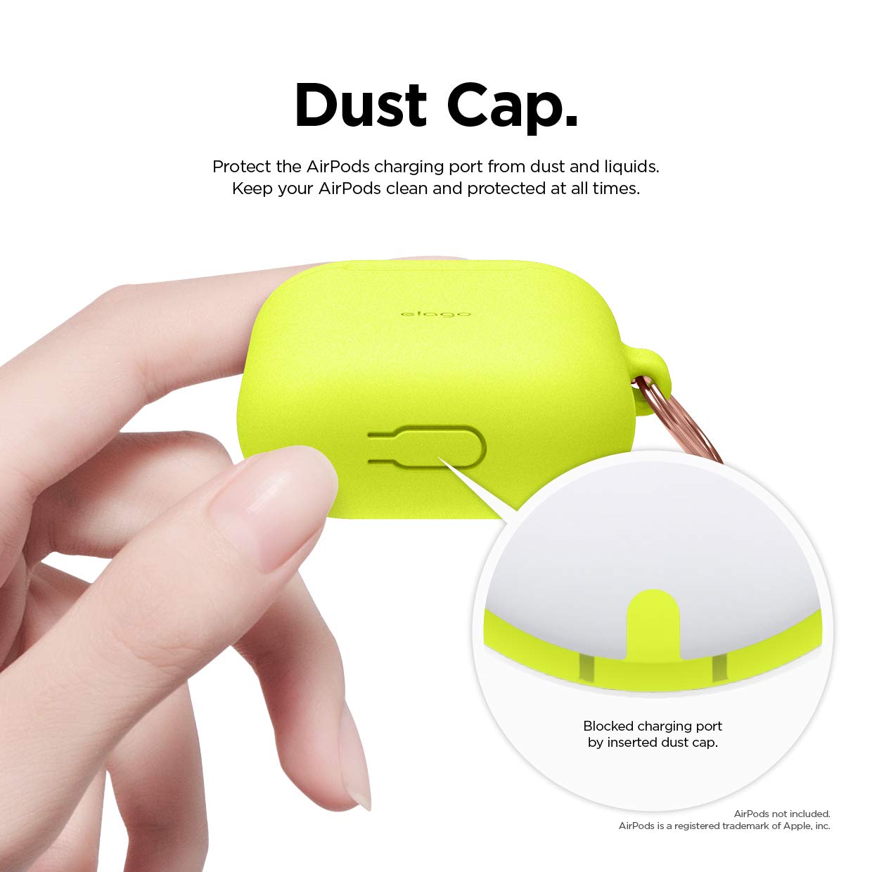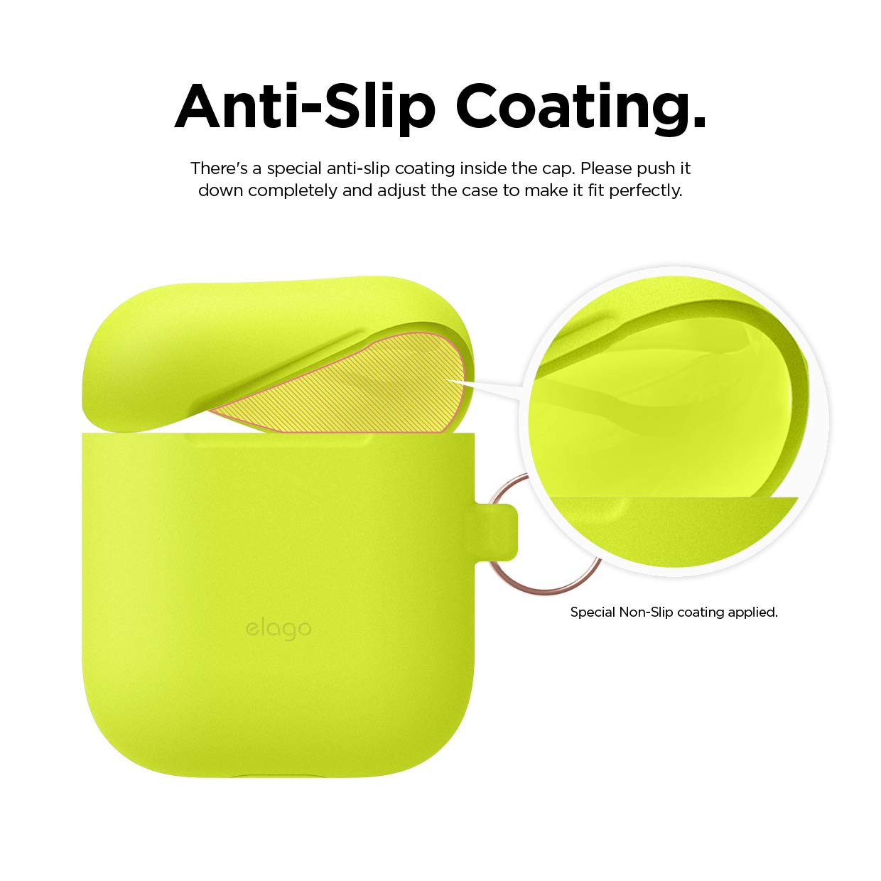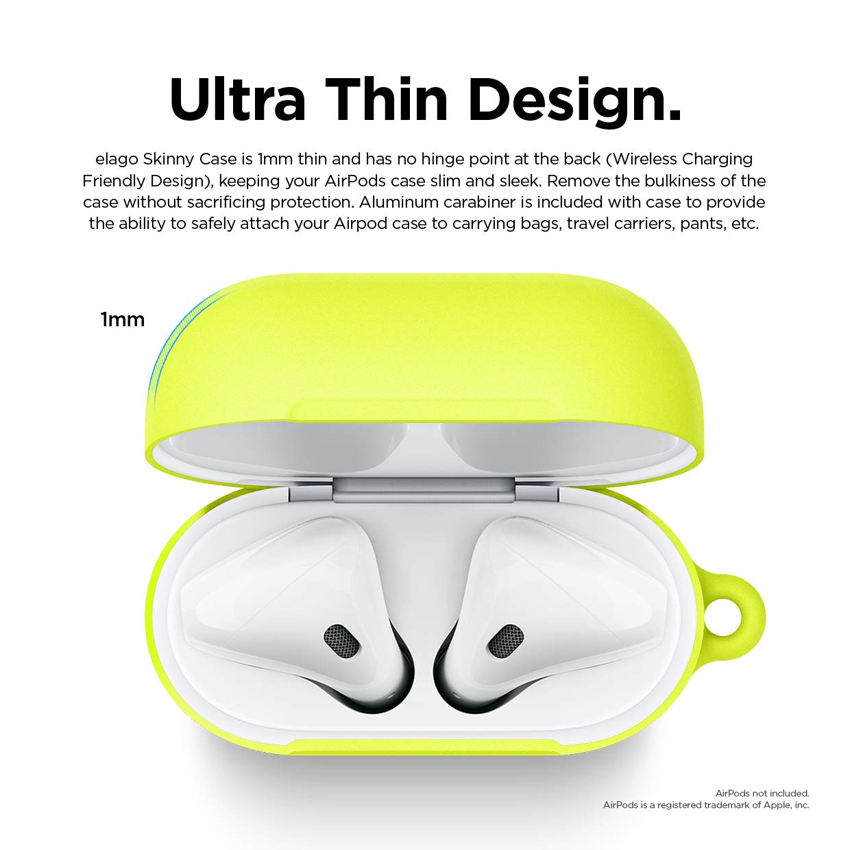 Elago Airpods Skinny Silicone Hang Case - тънък силиконов калъф с карабинер за Apple Airpods и Apple Airpods 2 with Wireless Charging Case (жълт-фосфор)