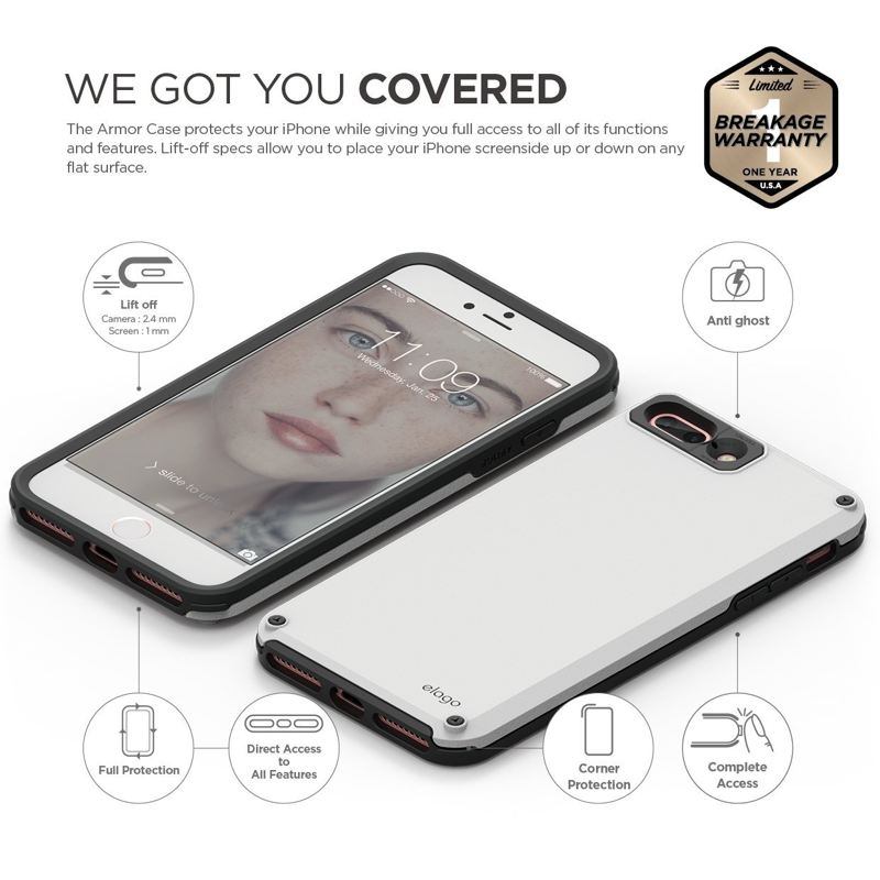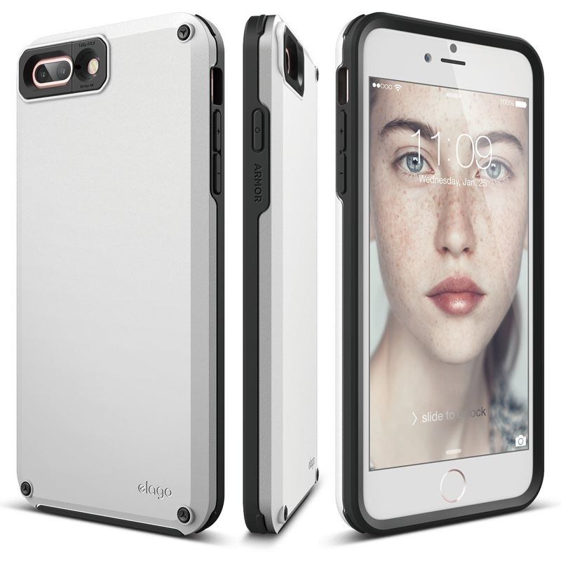 Elago Armor Case - хибриден кейс (поликарбонат + TPU) и HD покритие за iPhone 8 Plus, iPhone 7 Plus (бял)